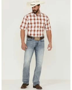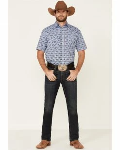 Rough Stock By Panhandle Royal Americana Print Short Sleeve Western Shirt For Men’s Royal Blue