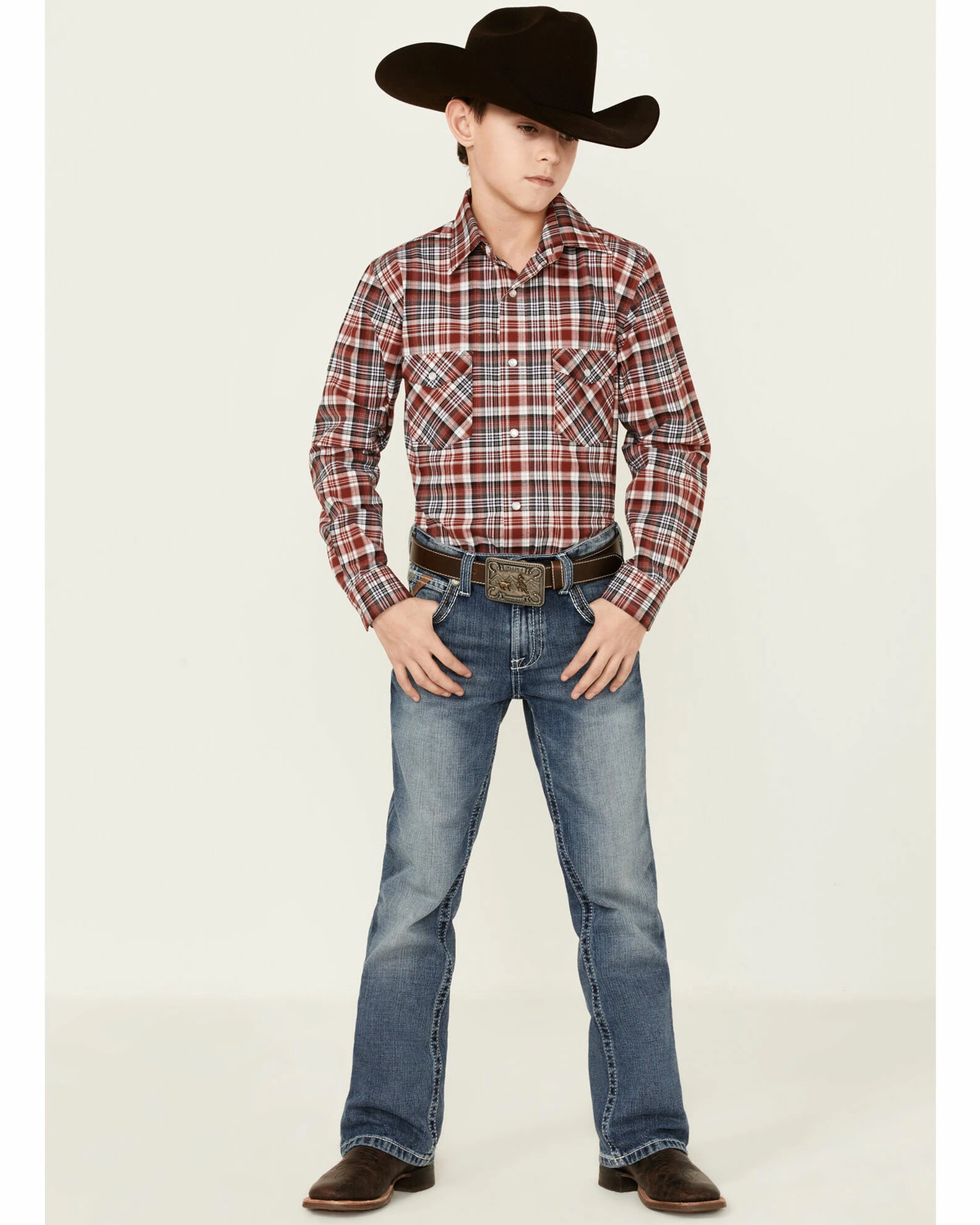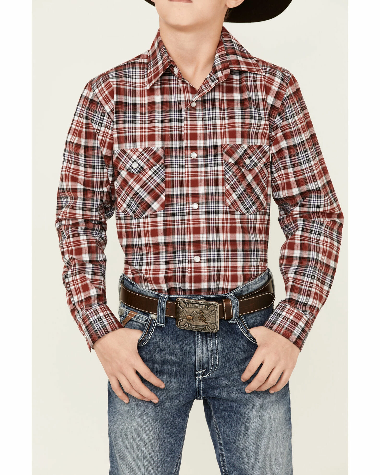 Rough Stock By Panhandle Boys’ Maroon & Black Long Sleeve Snap Western Shirt