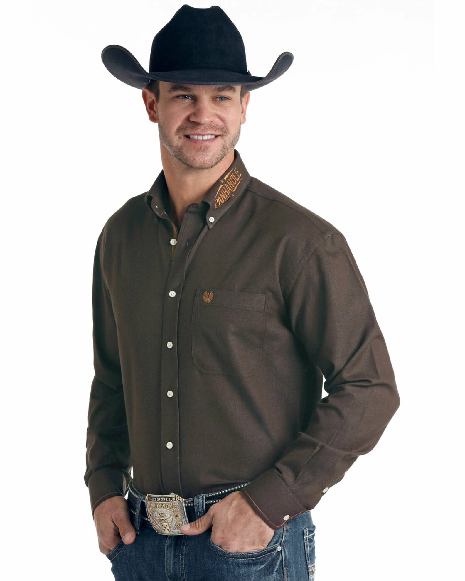 Rough Stock By Panhandle Men’s Brown Micro Honeycomb Solid Long Sleeve Western Shirt