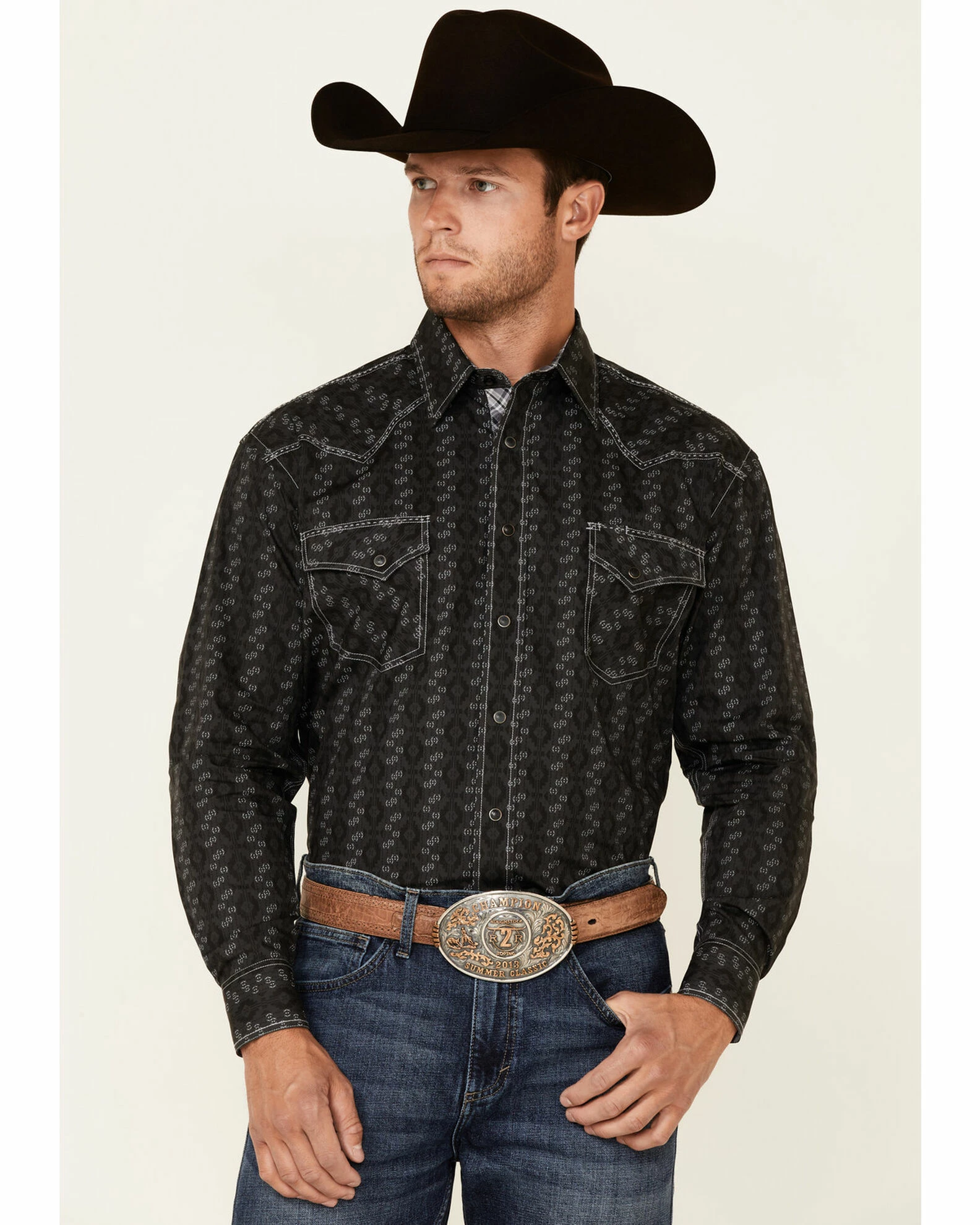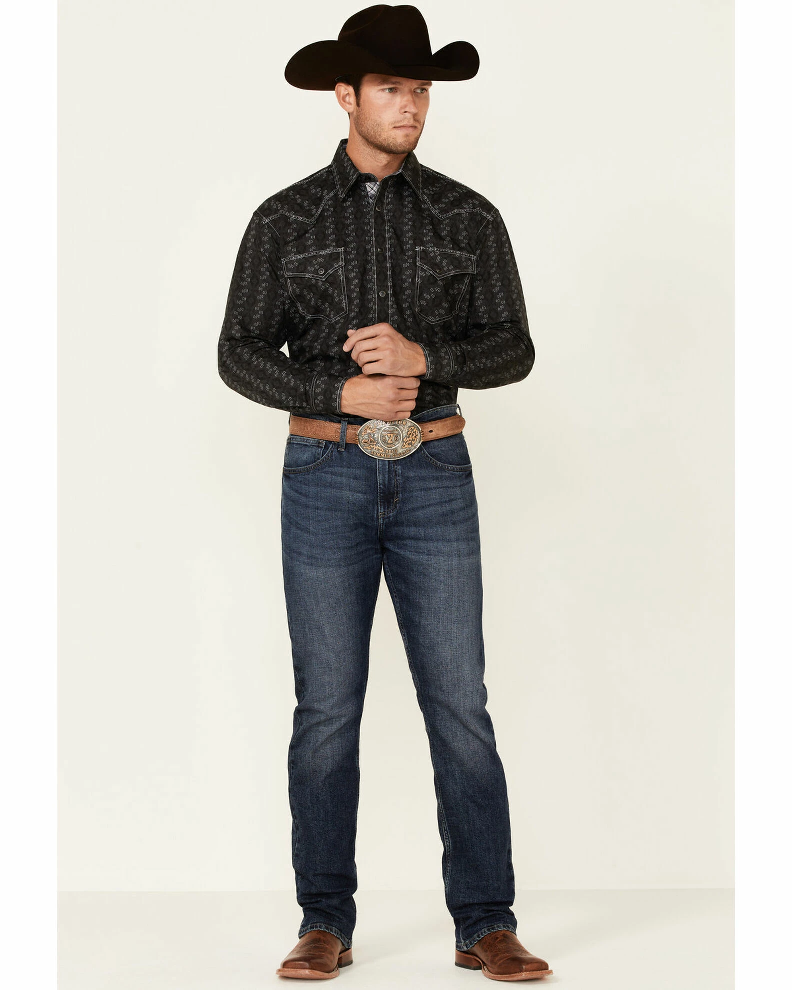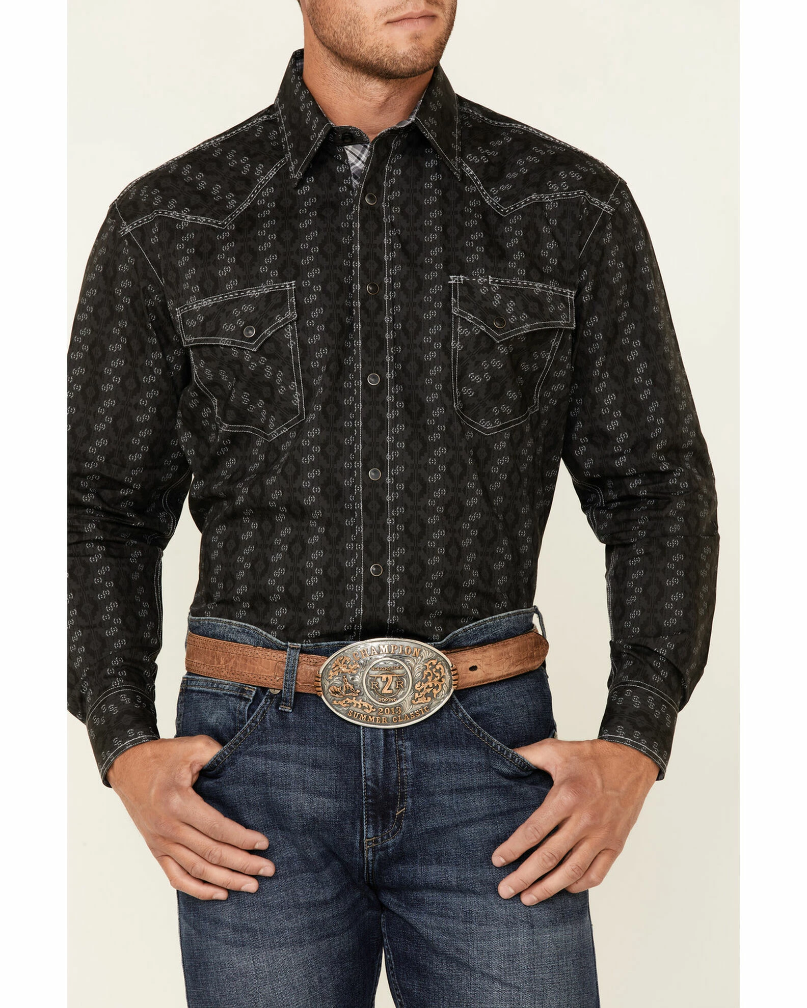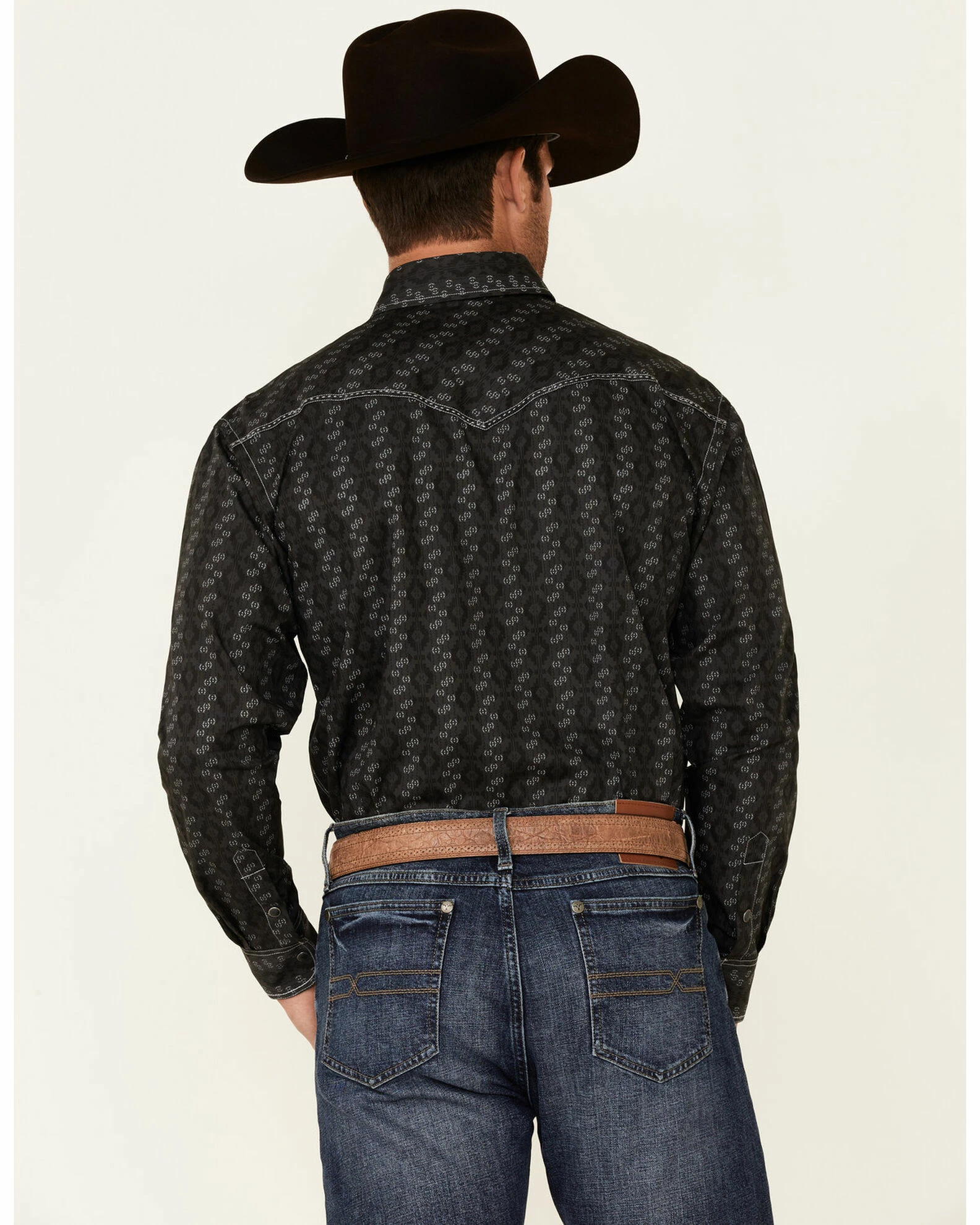 Rough Stock By Panhandle Men’s Charcoal Tonal Southwestern Print Long Sleeve Snap Western Shirt