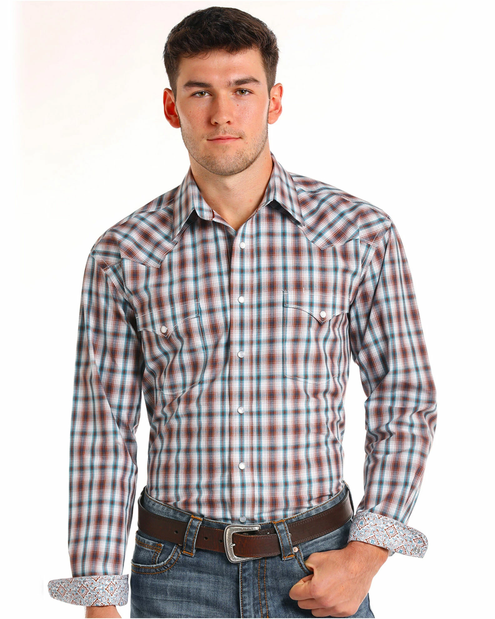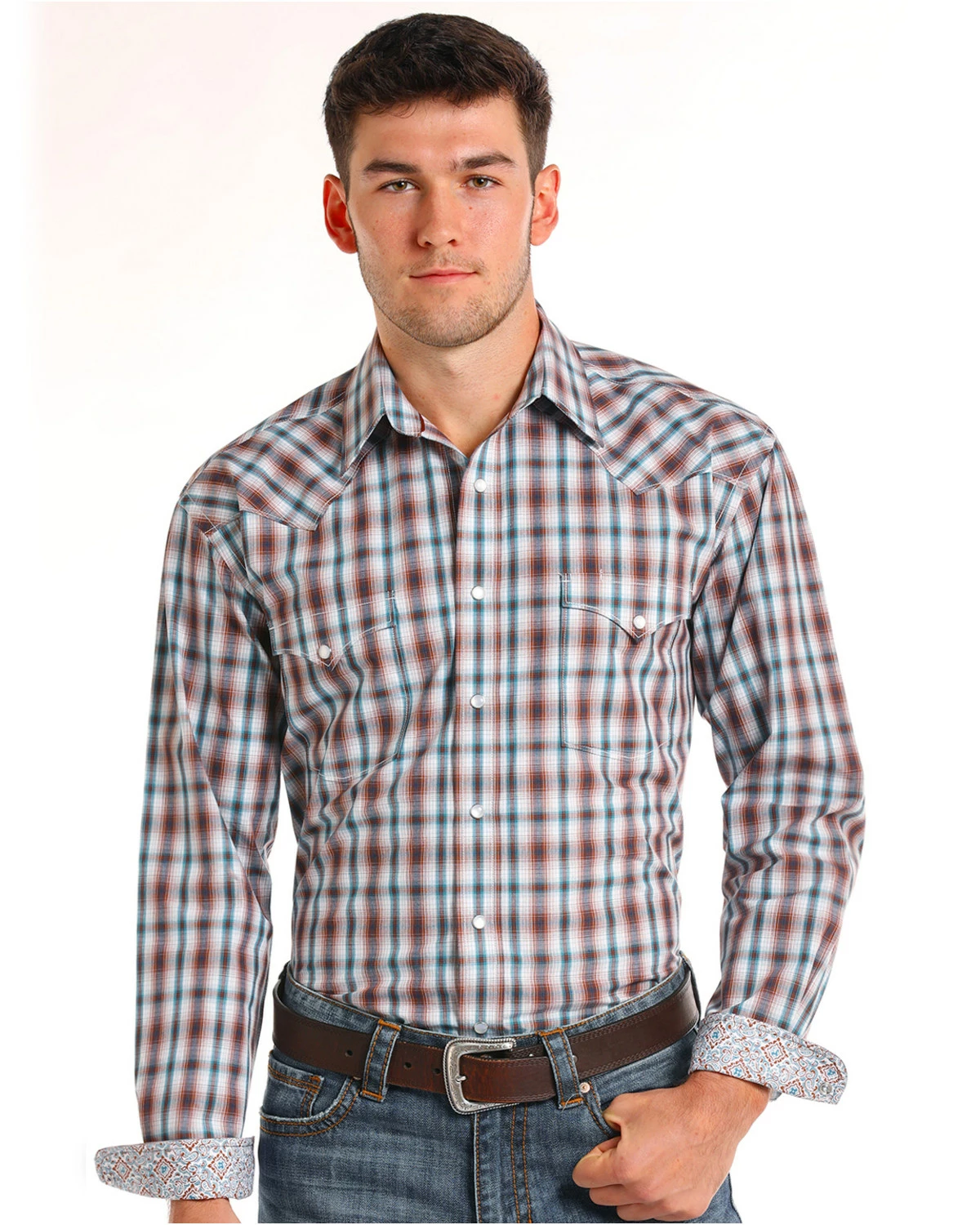 Rough Stock by Panhandle combines modern design with traditional style for a look that’s classic yet fresh. This handsome shirt features cotton blend construction for a comfortable, lightweight feel. It has a striking vintage plaid print with contrast undercuffs, dual chest pockets and chain stitch detail. Tough enough for a day at the ranch and stylish enough for a night out, you can’t go wrong with this quality western shirt from Rough Stock by Panhandle.