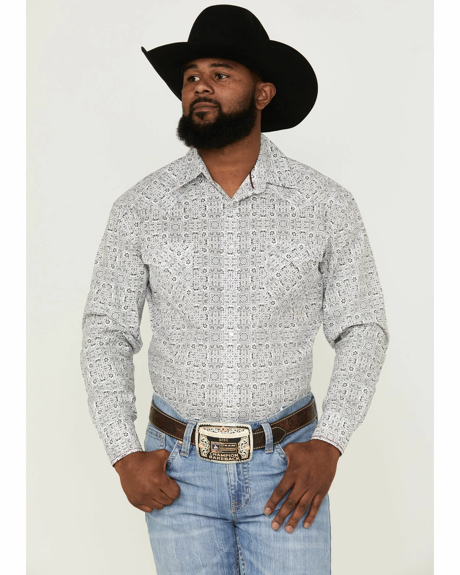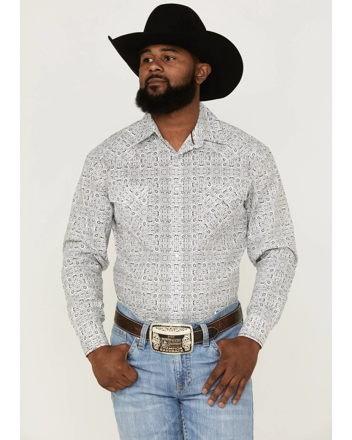 Rough Stock By Panhandle Men’s Digi Bandana Print Long Sleeve Snap Western Shirt White