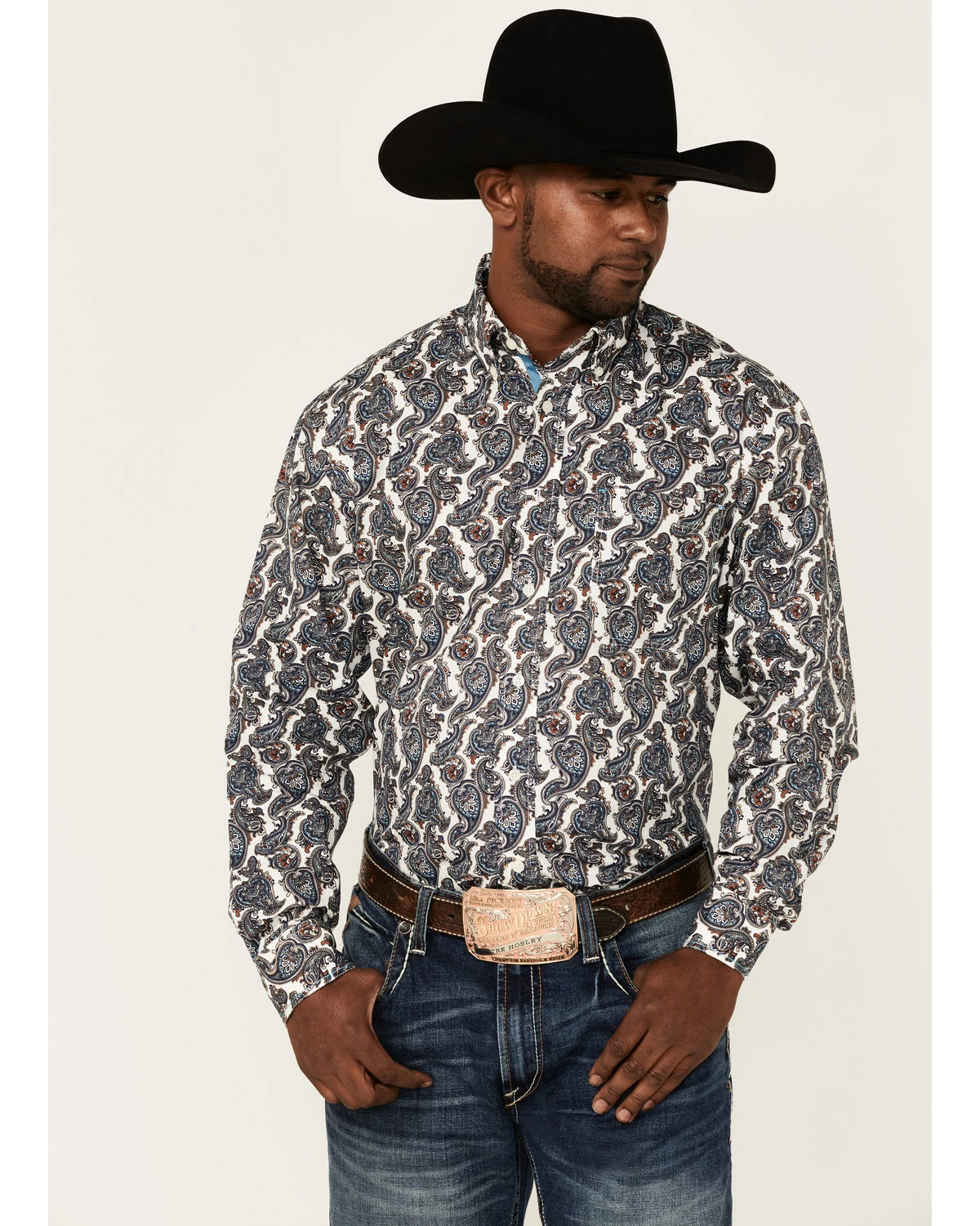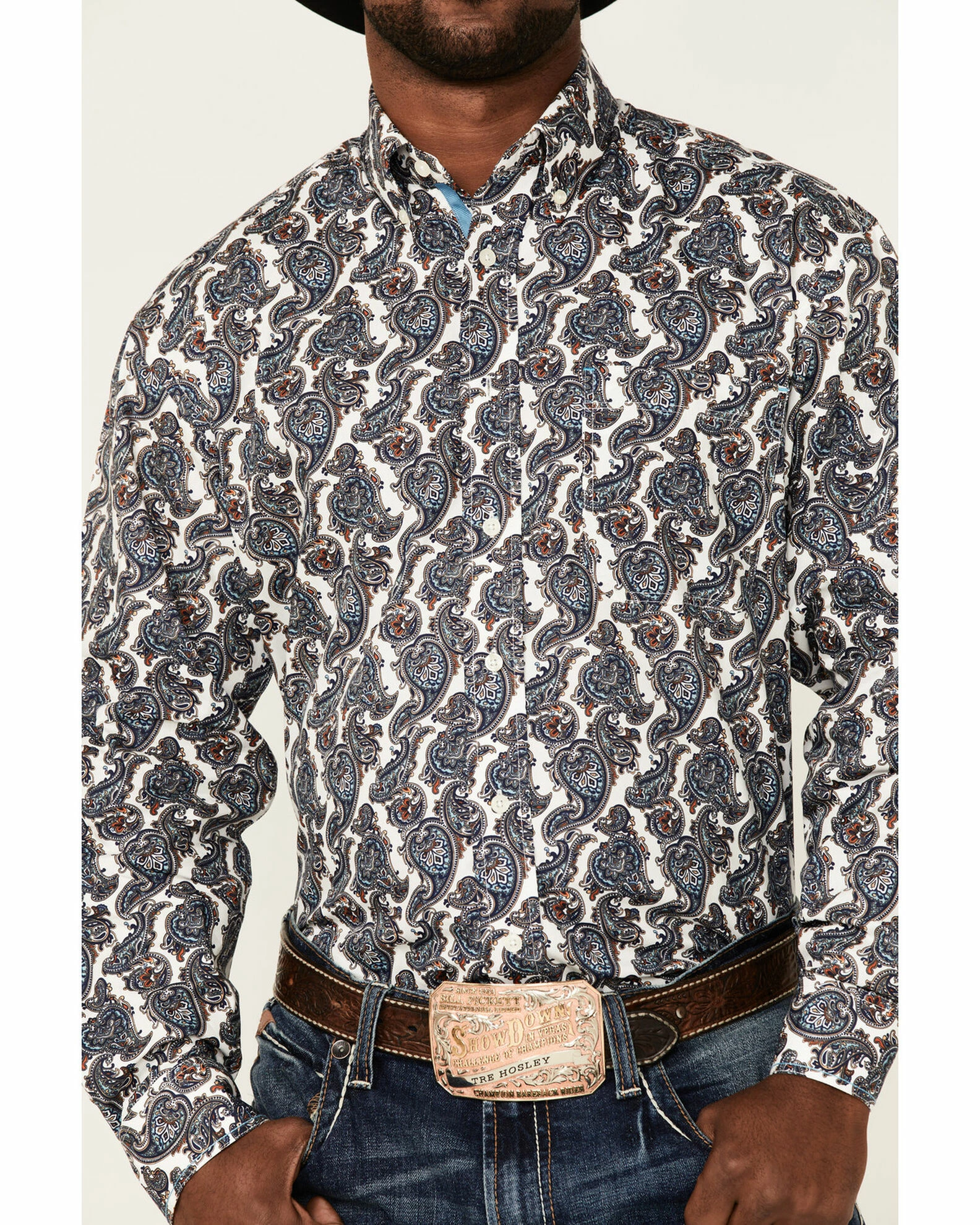 Rough Stock By Panhandle Men’s Ercu Paisley Print Long Sleeve Button-Down Western Shirt Navy