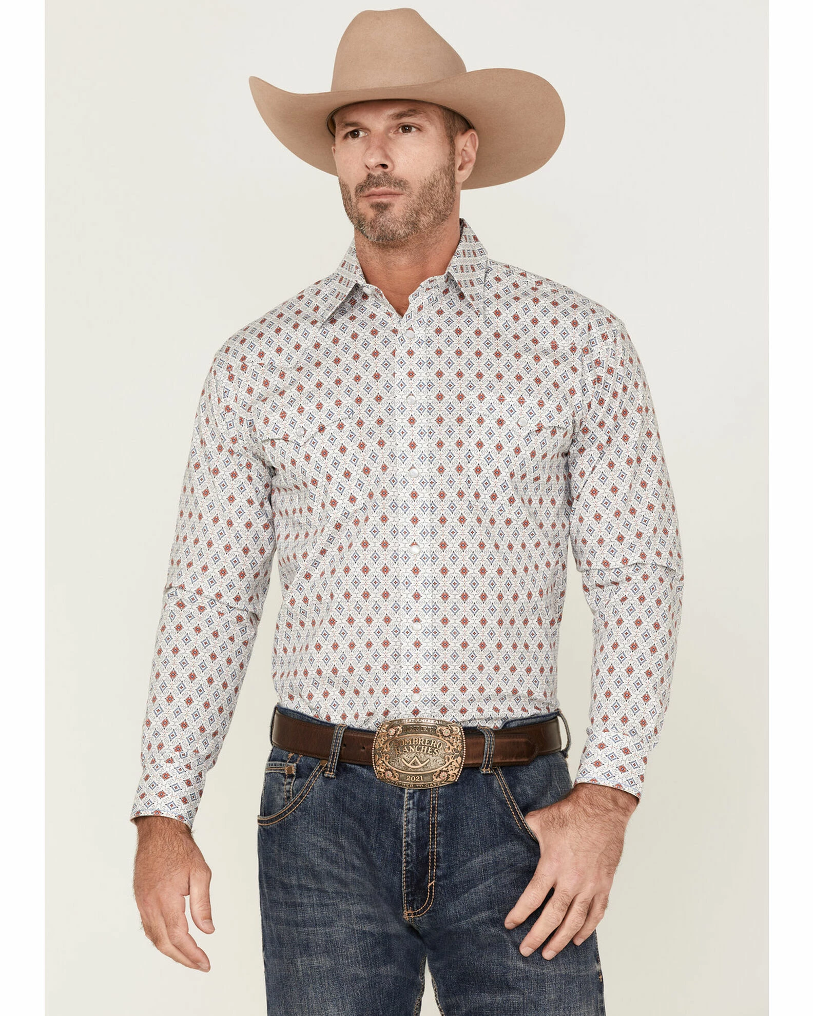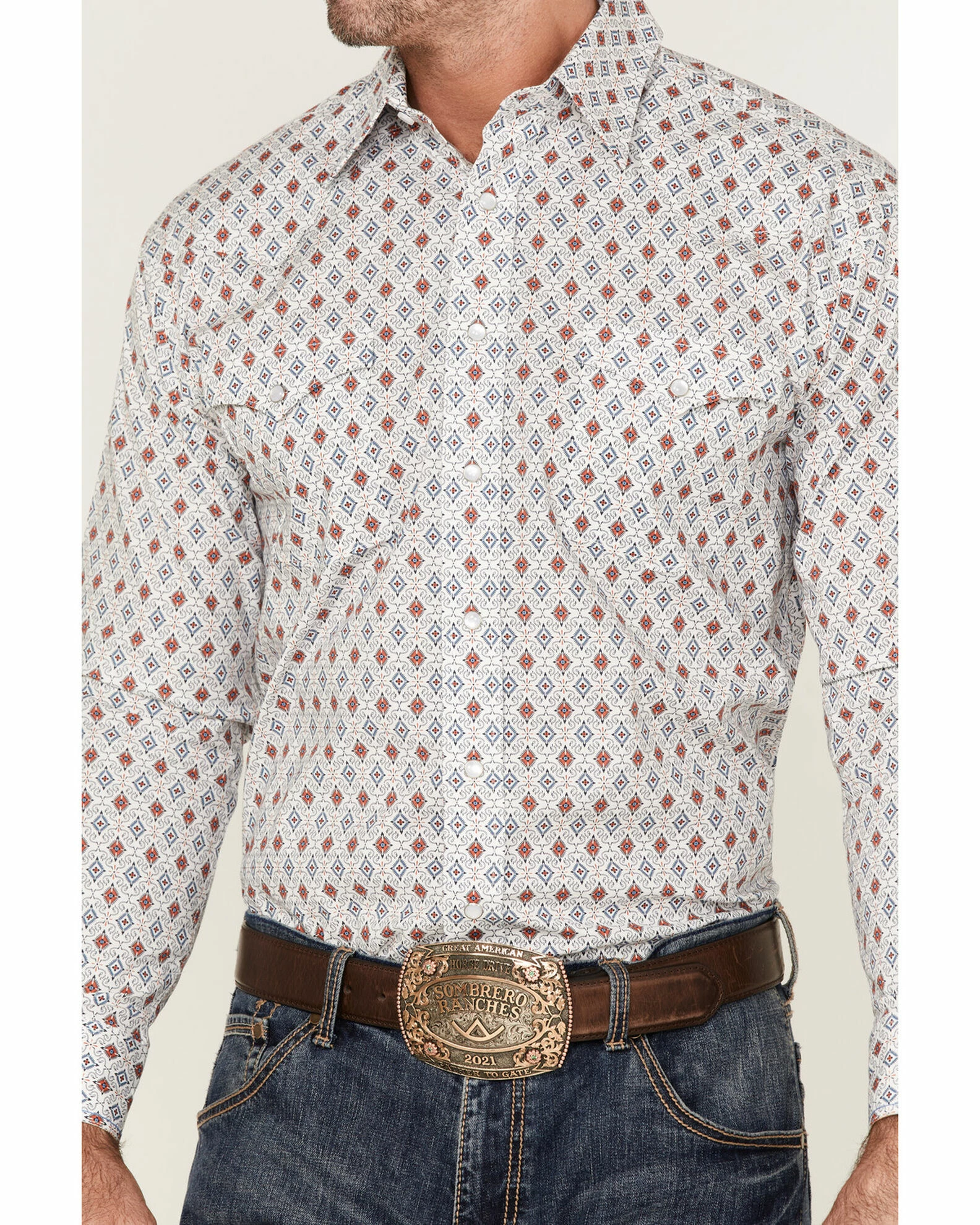Rough Stock By Panhandle Men’s Fancy Diamond Print Long Sleeve Snap Western Shirt