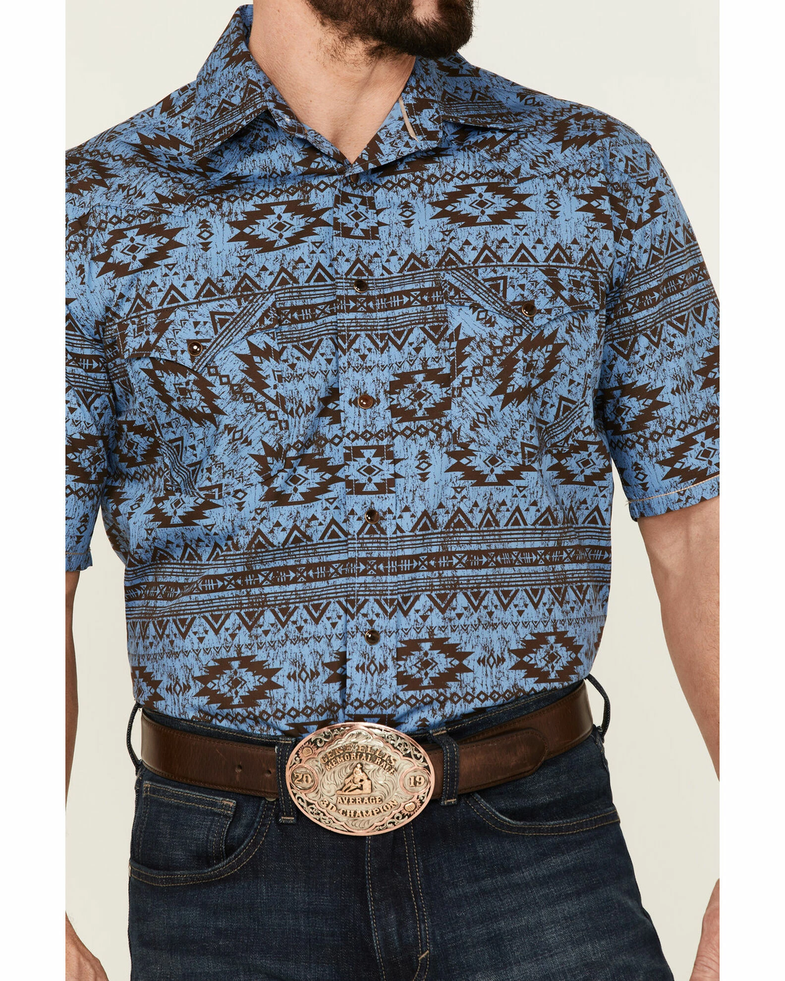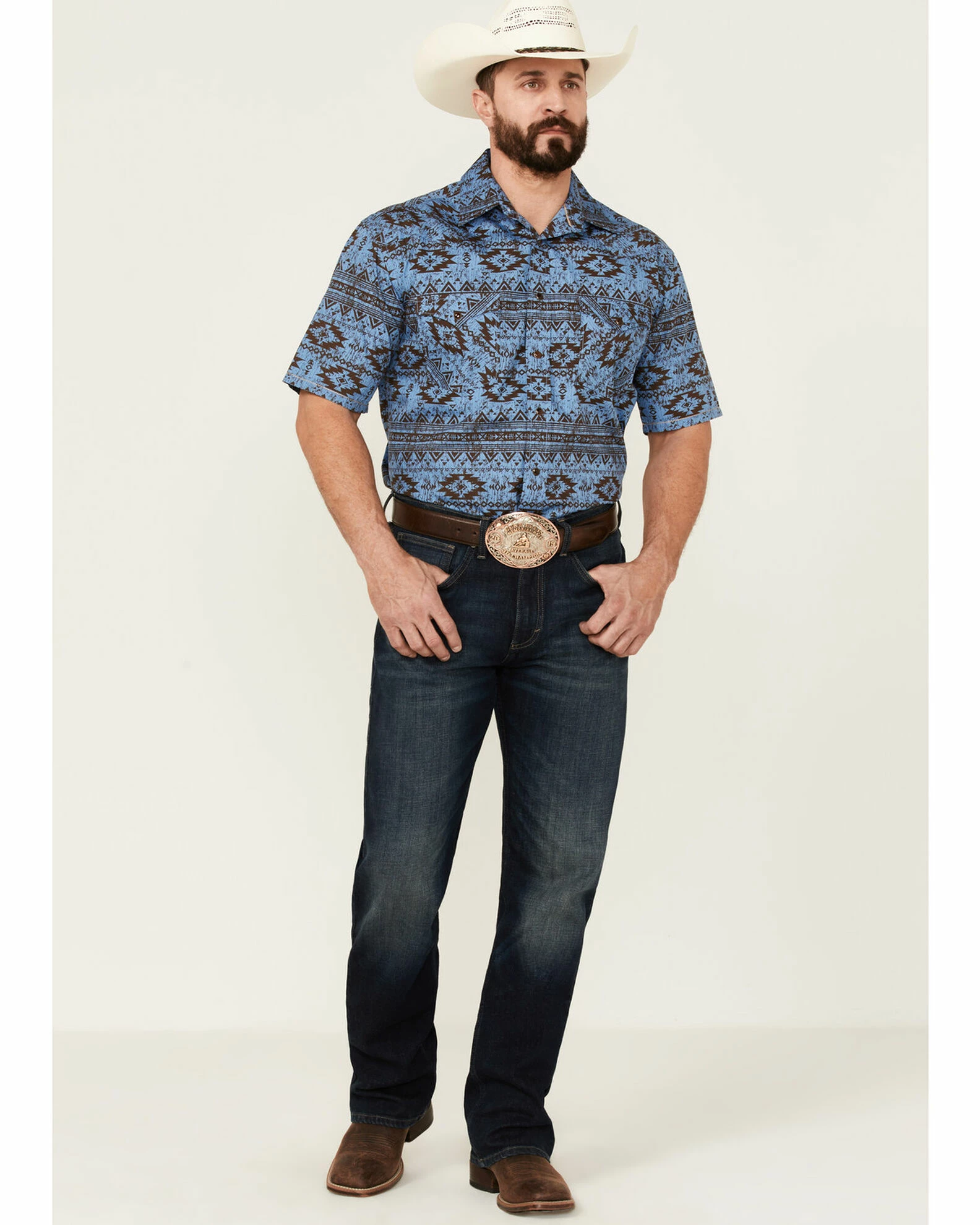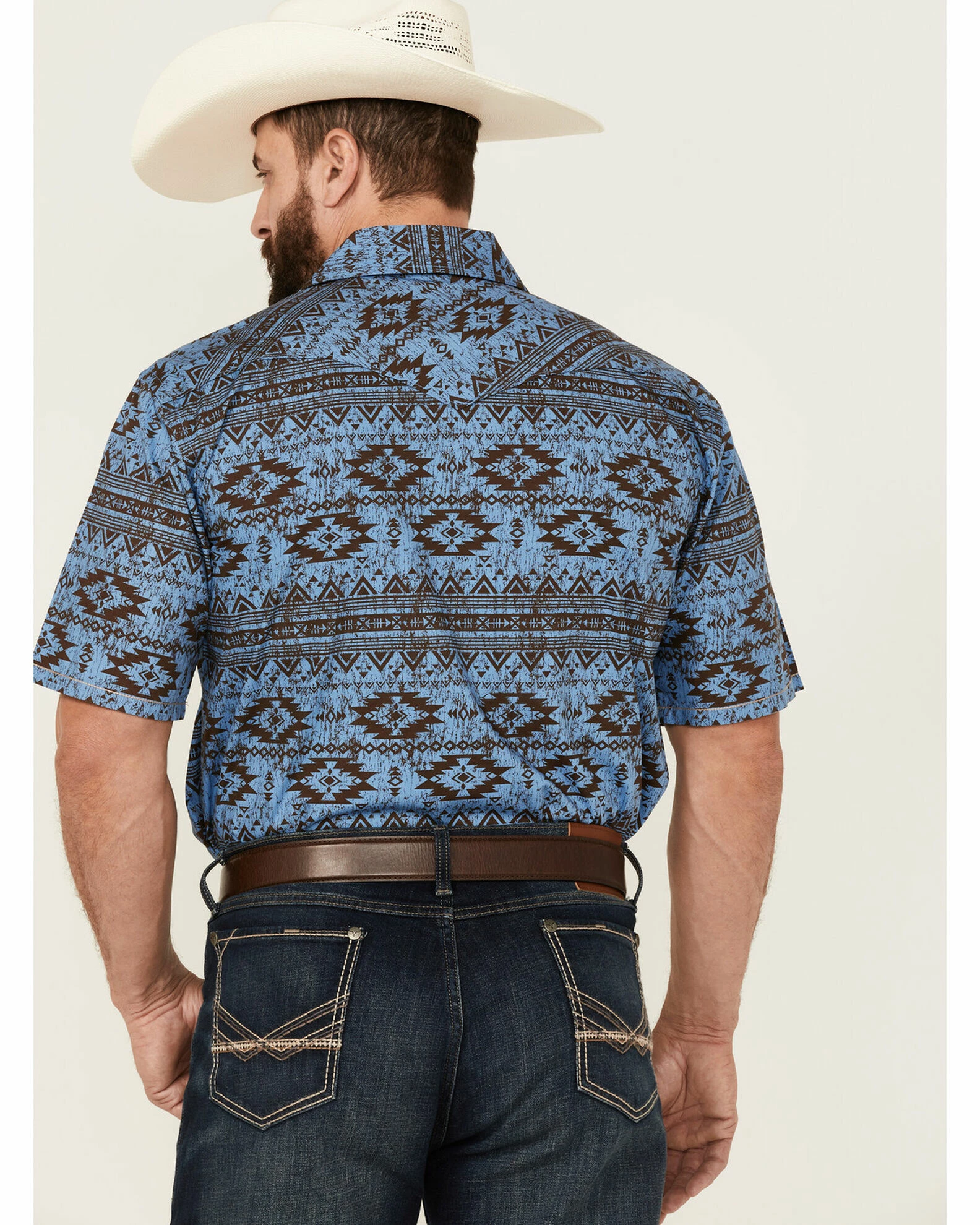 Rough Stock By Panhandle Men’s Horizontal Southwestern Print Short Sleeve Snap Blue Western Shirt