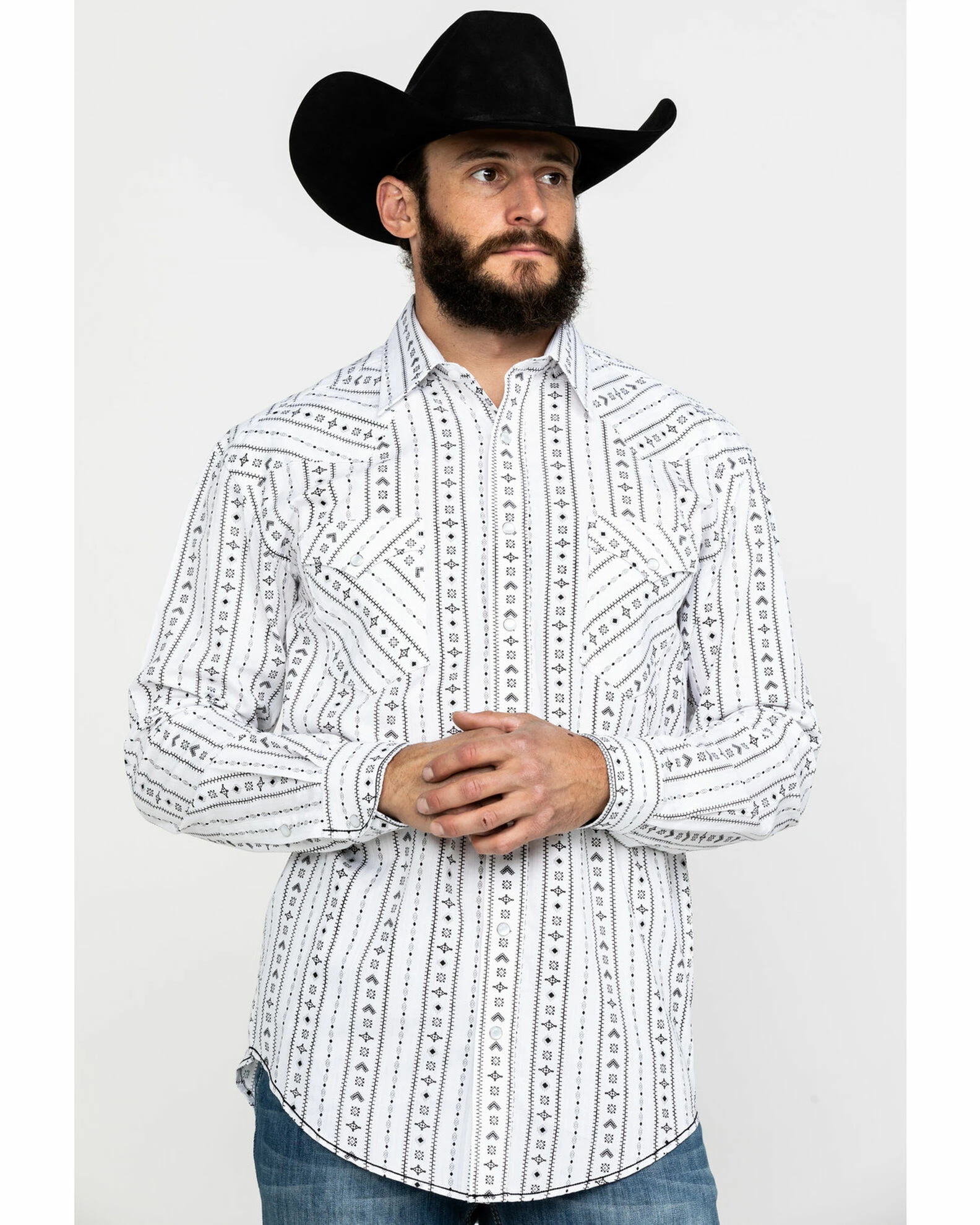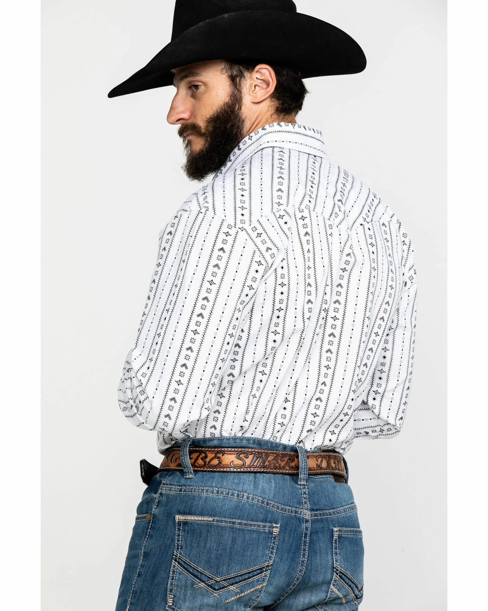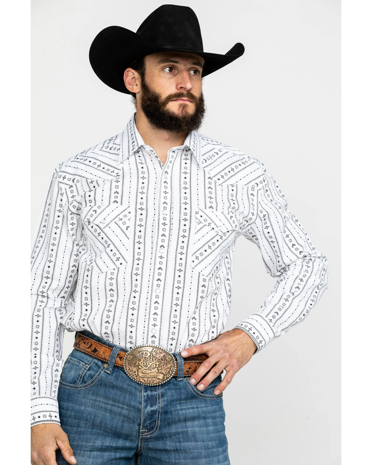 Rough Stock By Panhandle Men’s Kaibab Southwestern Print Long Sleeve Western Shirt White