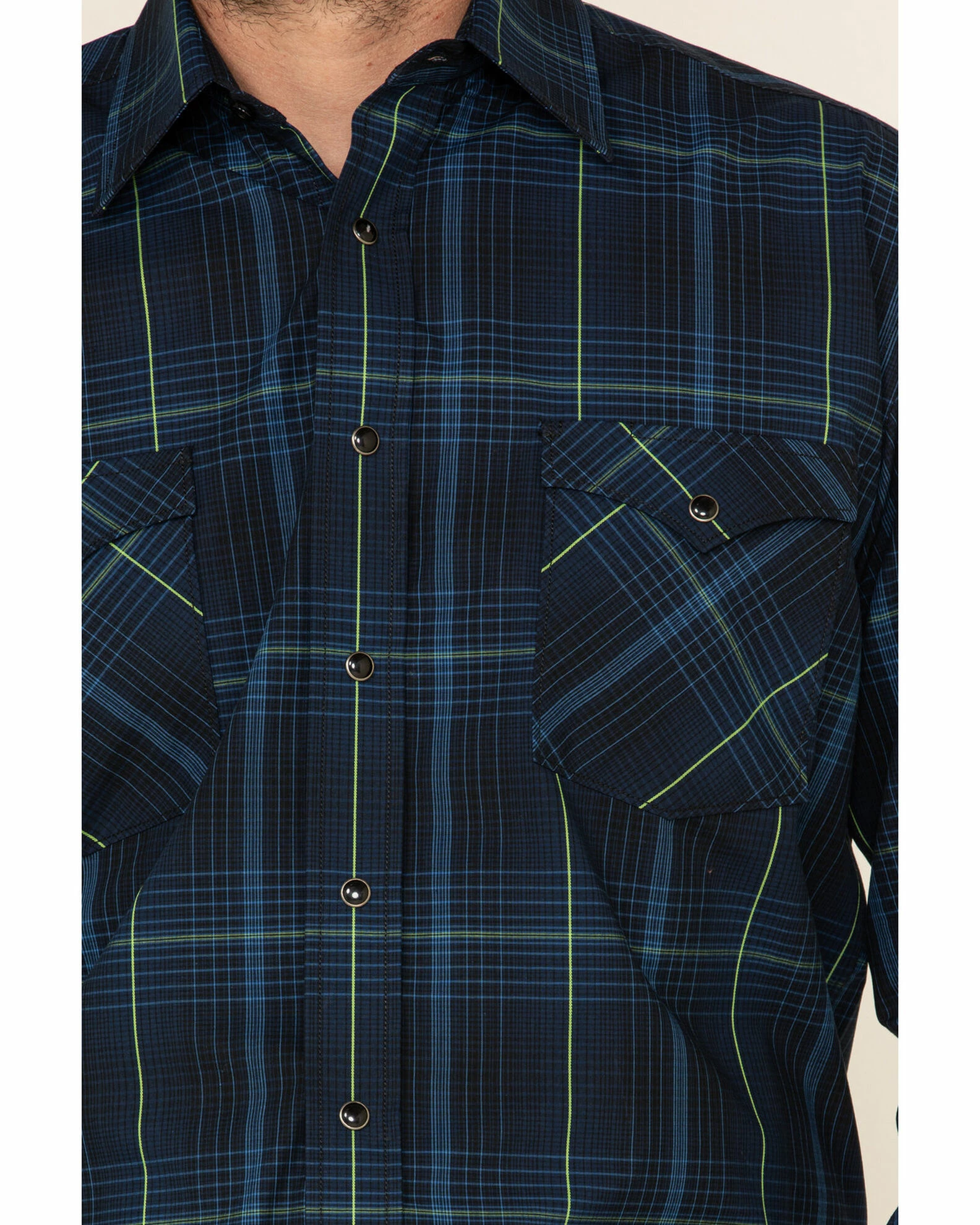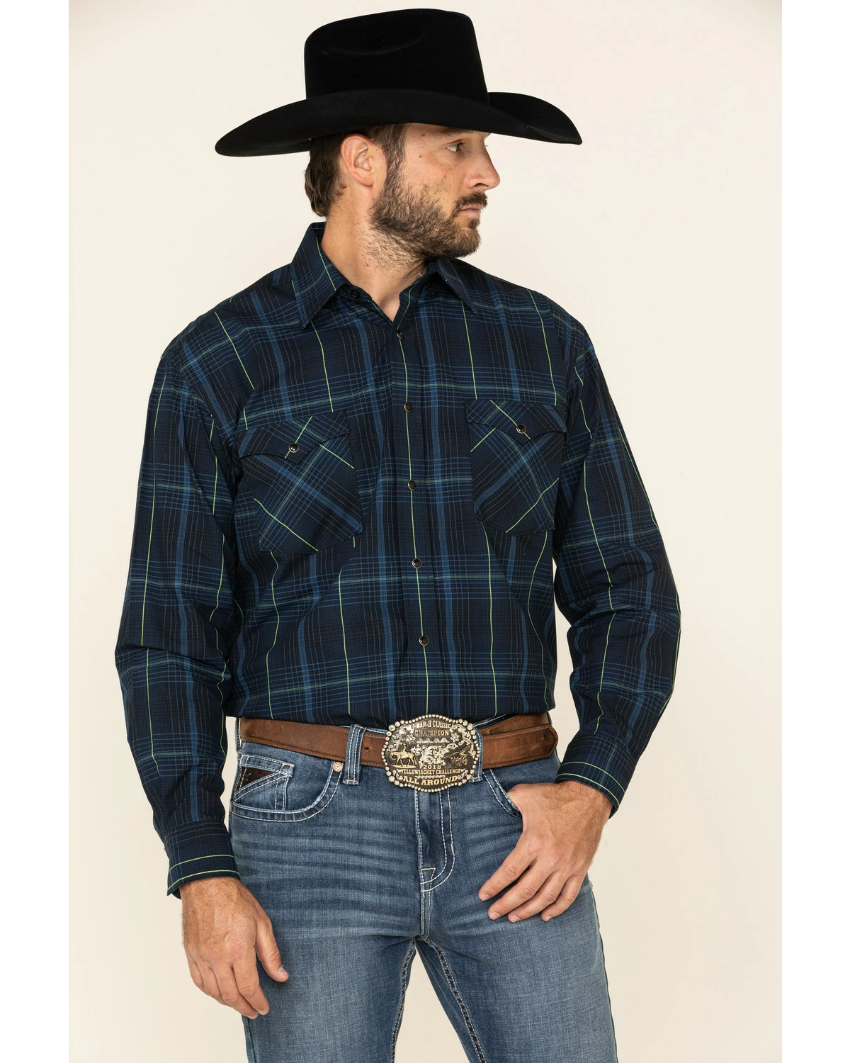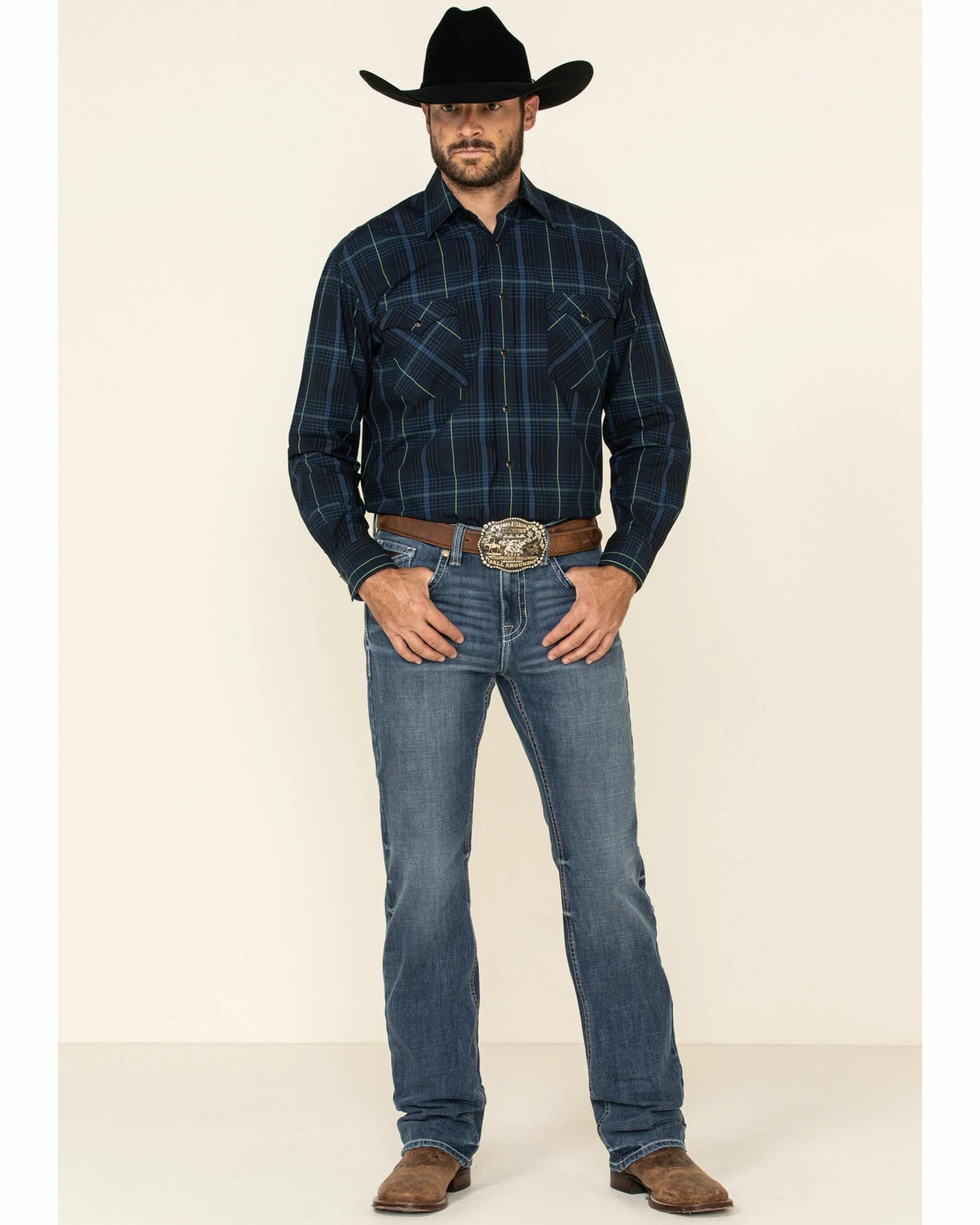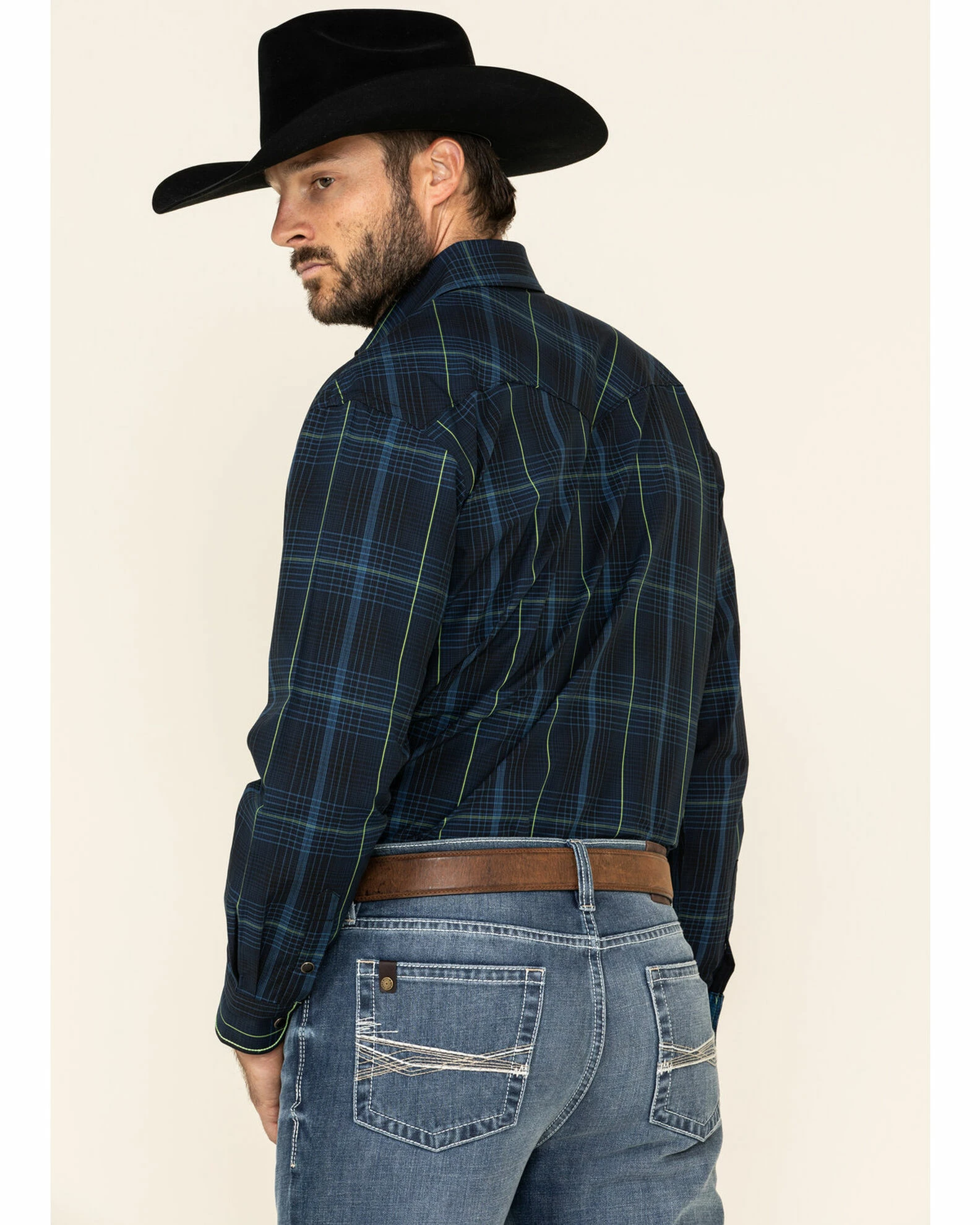 Rough Stock By Panhandle Men’s Larkspur Ombre Plaid Long Sleeve Western Shirt Black