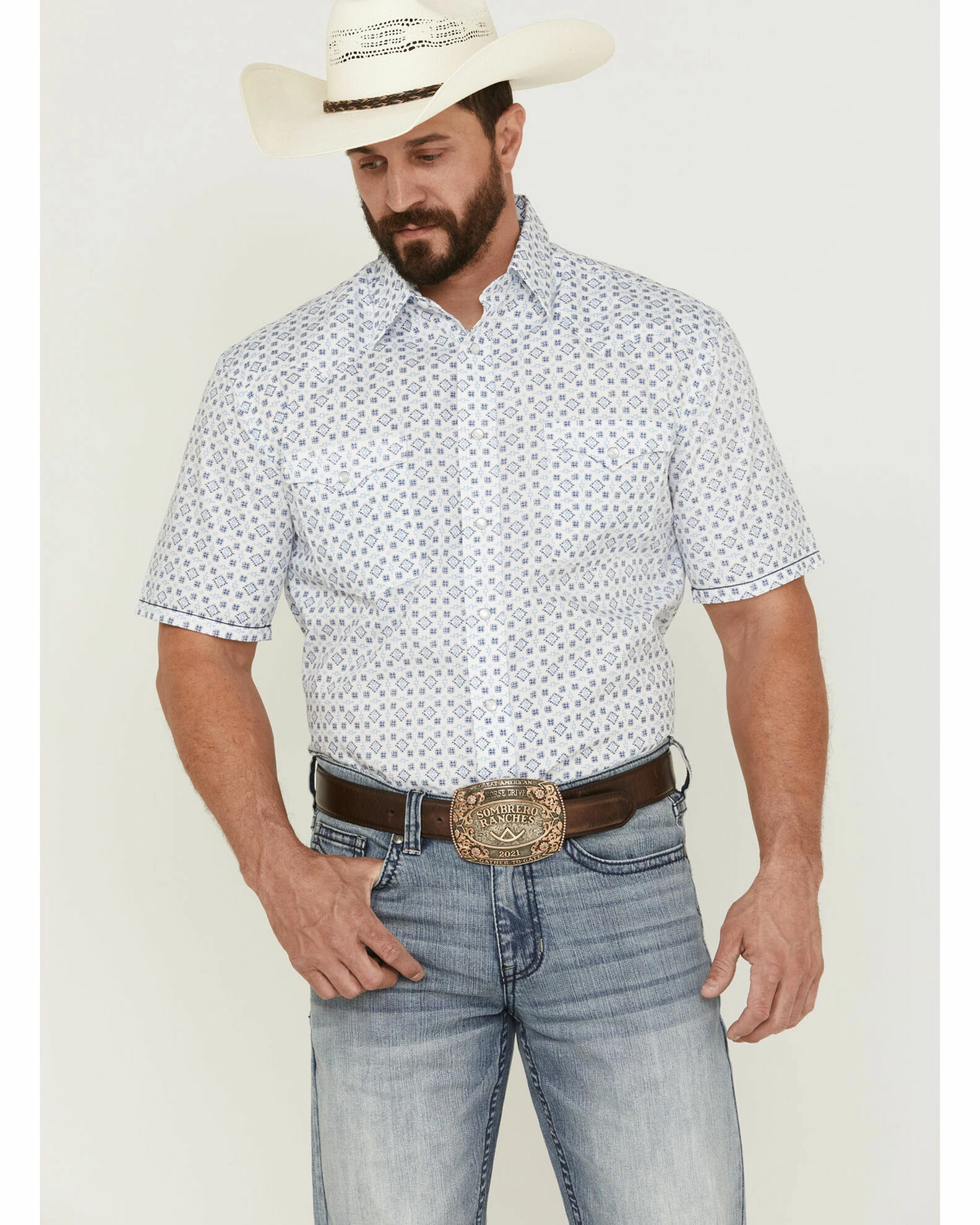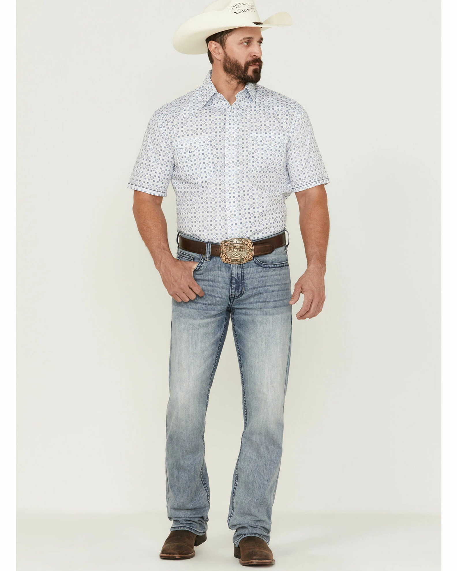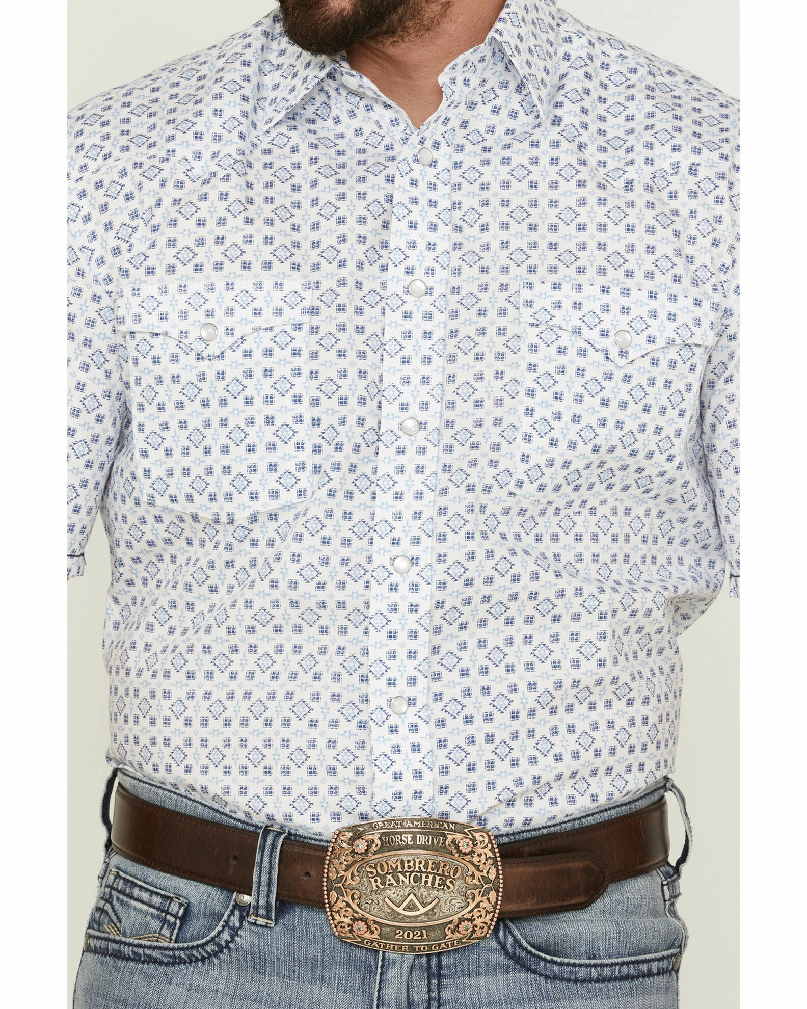 Rough Stock By Panhandle Men’s Mini Southwestern Print Short Sleeve Snap Western Shirt Blue