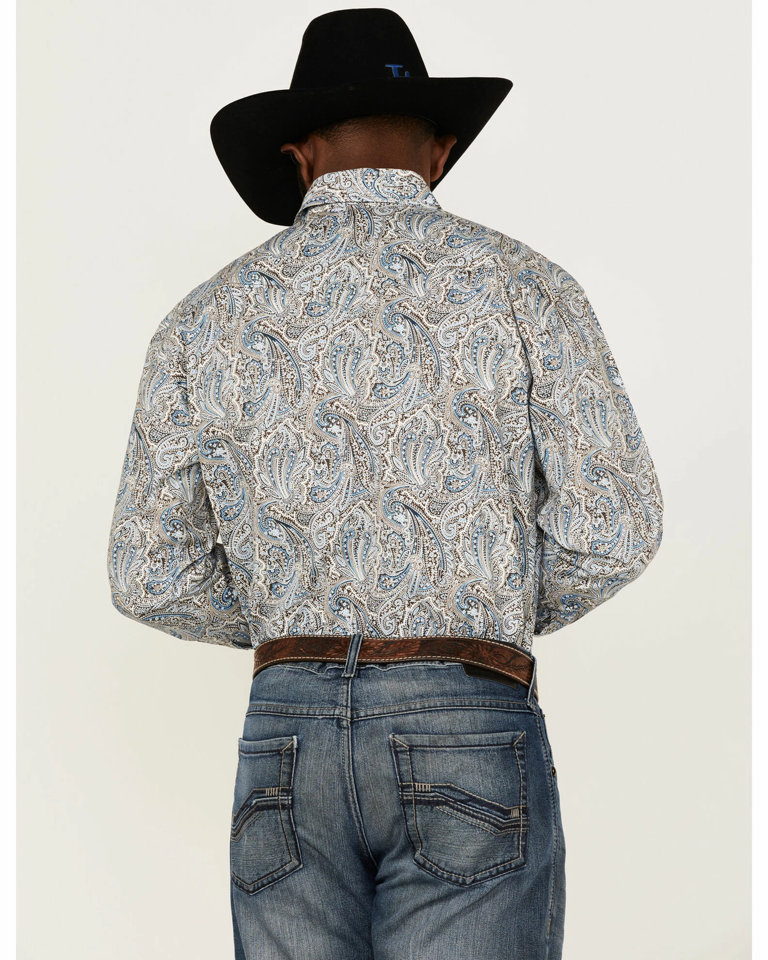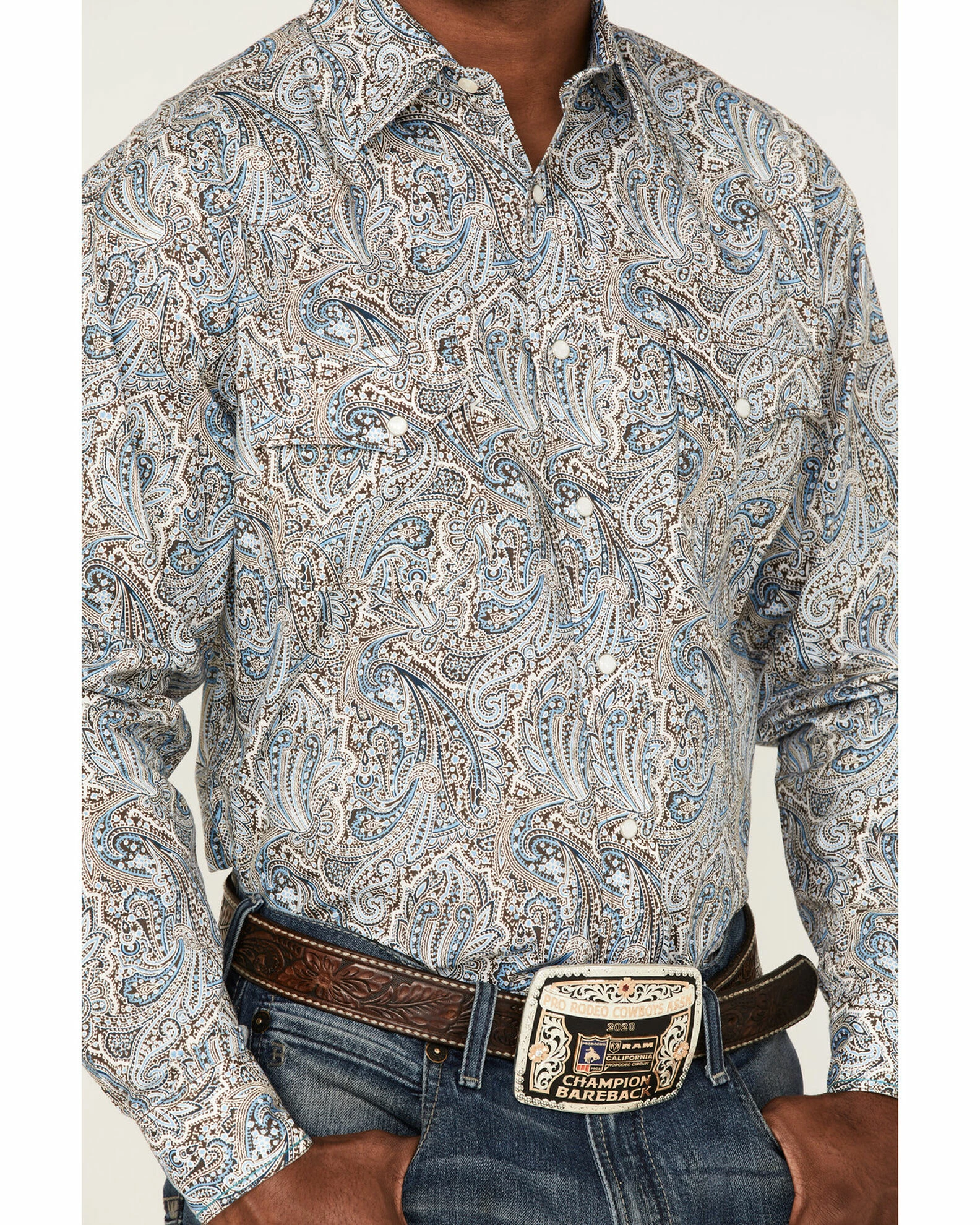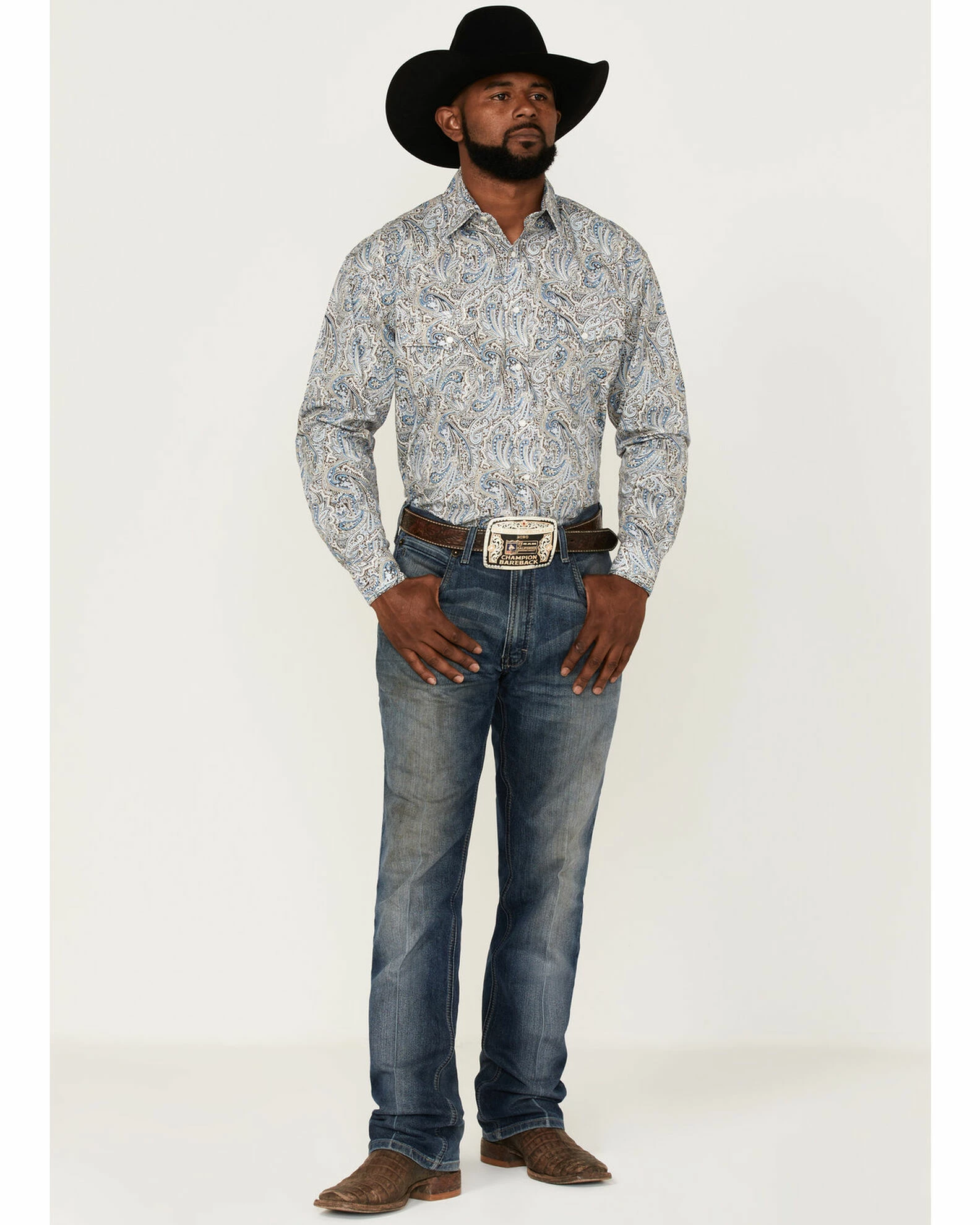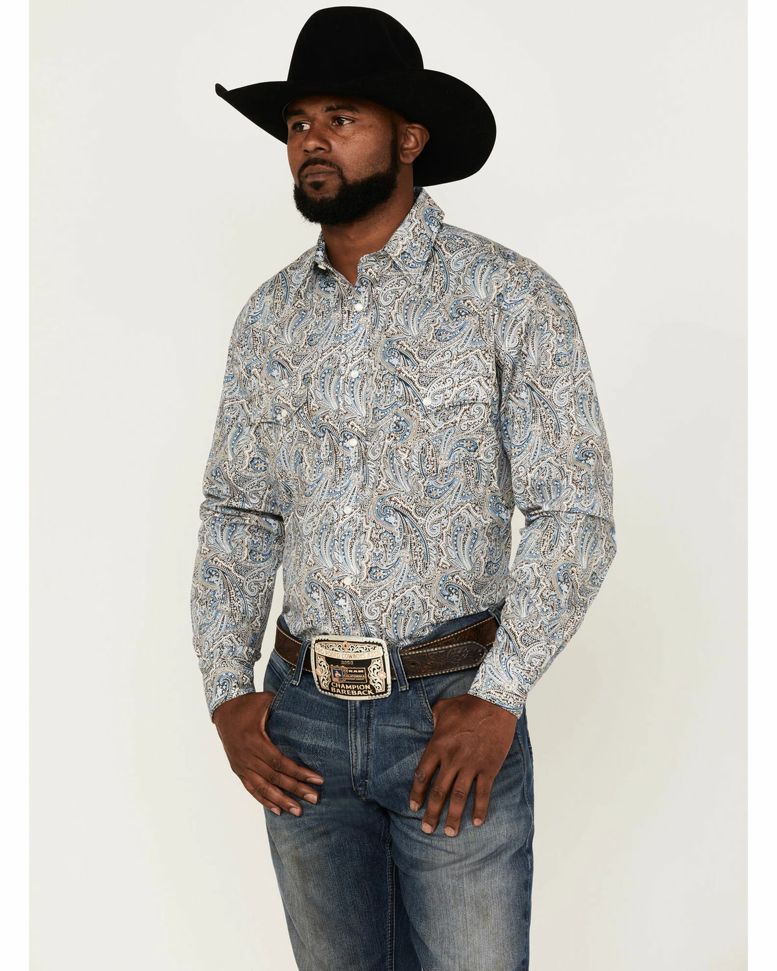Rough Stock By Panhandle Men’s Stretch Paisley Print Long Sleeve Snap Western Shirt Blue