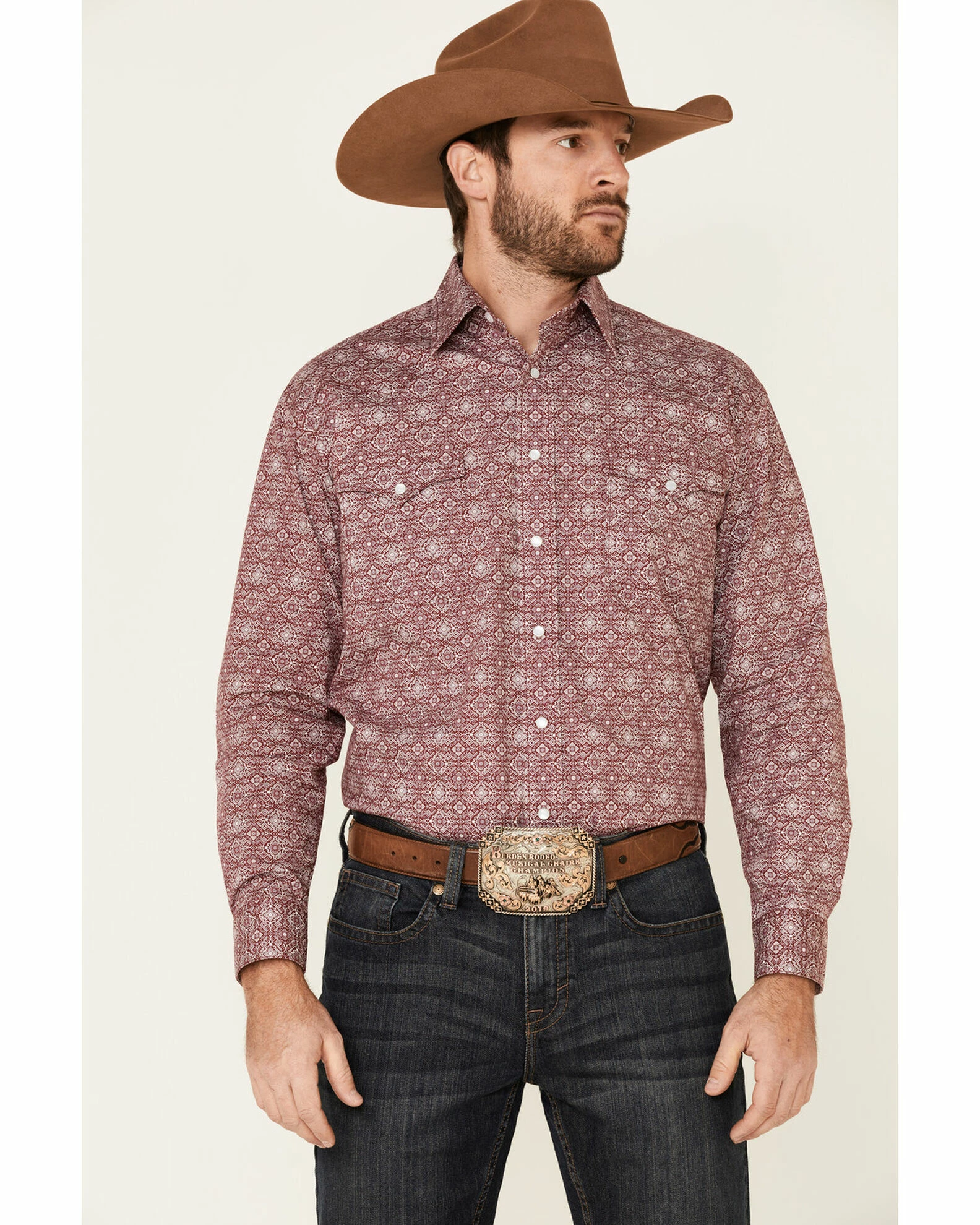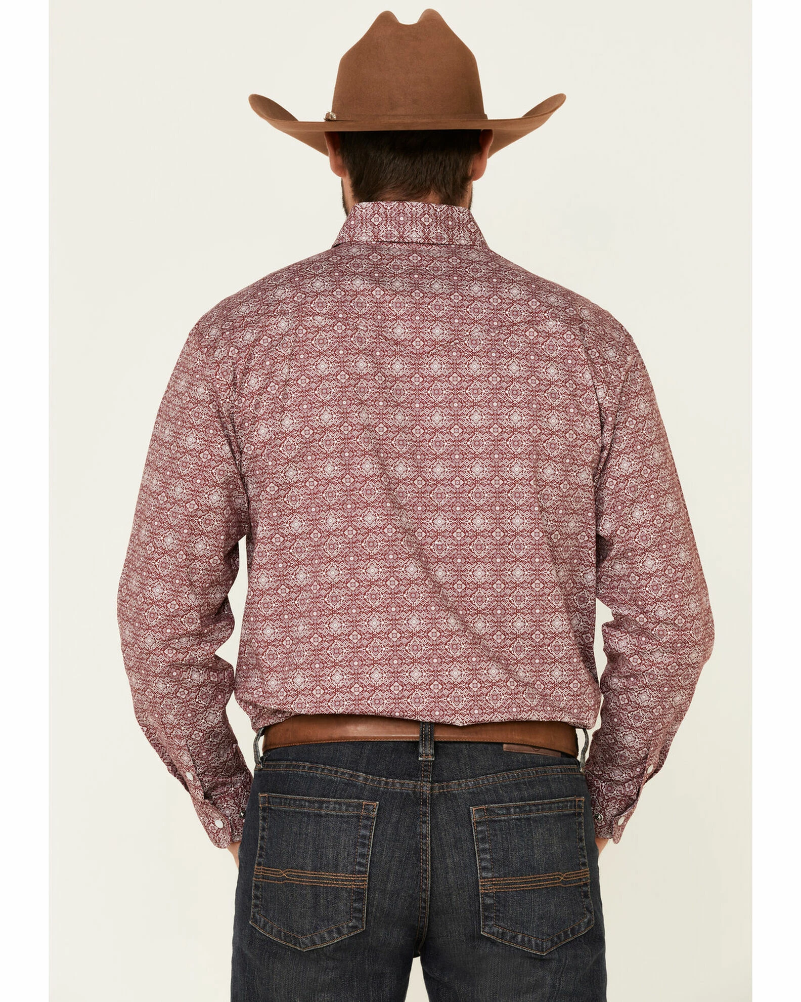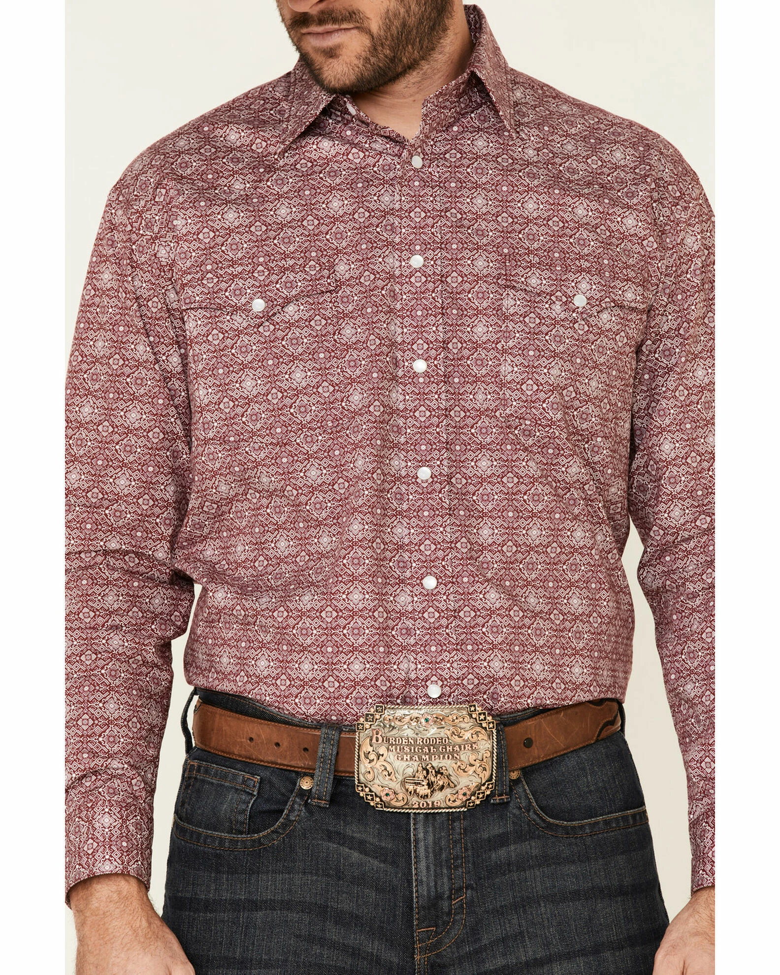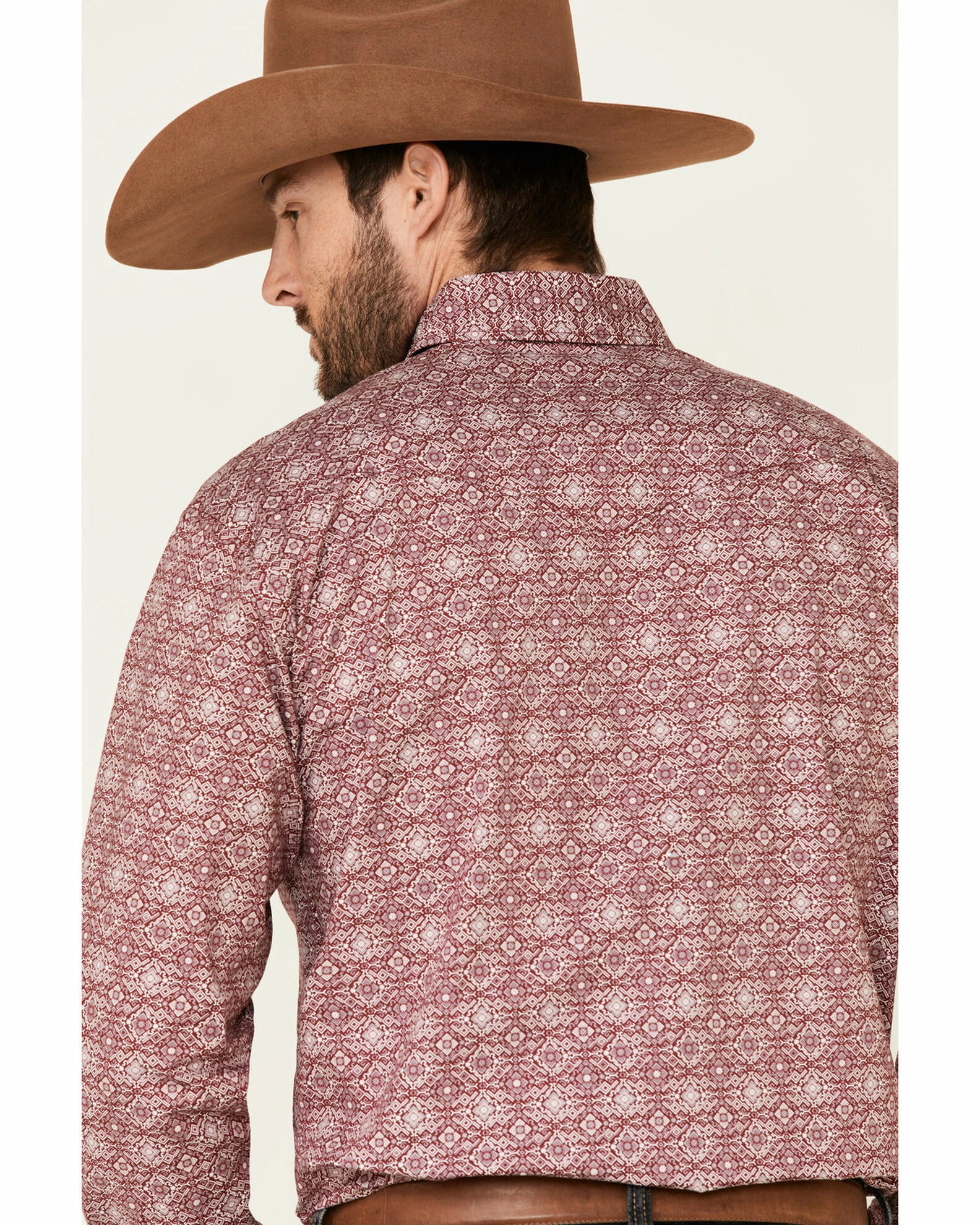 Rough Stock By Panhandle Men’s Wine Medallion Print Long Sleeve Western Shirt