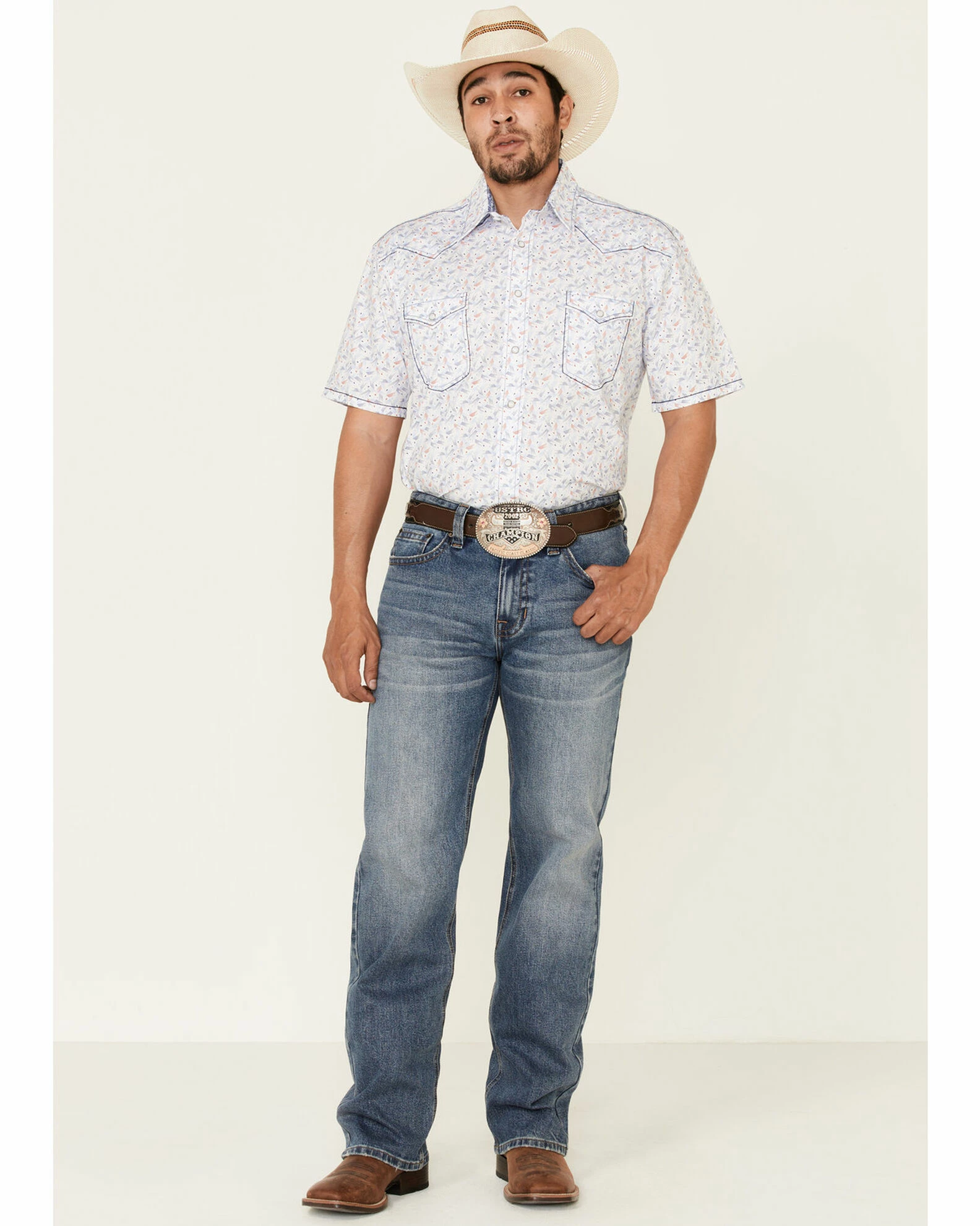 Rough Stock By Panhandle Royal Americana Print Short Sleeve Western Shirt For Men’s Royal Blue
