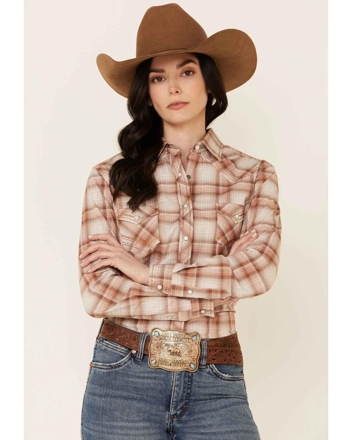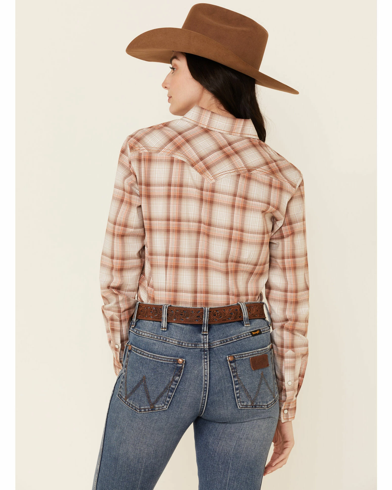 Rough Stock By Panhandle Women’s Brown Ombre Plaid Long Sleeve Snap Western Core Shirt
