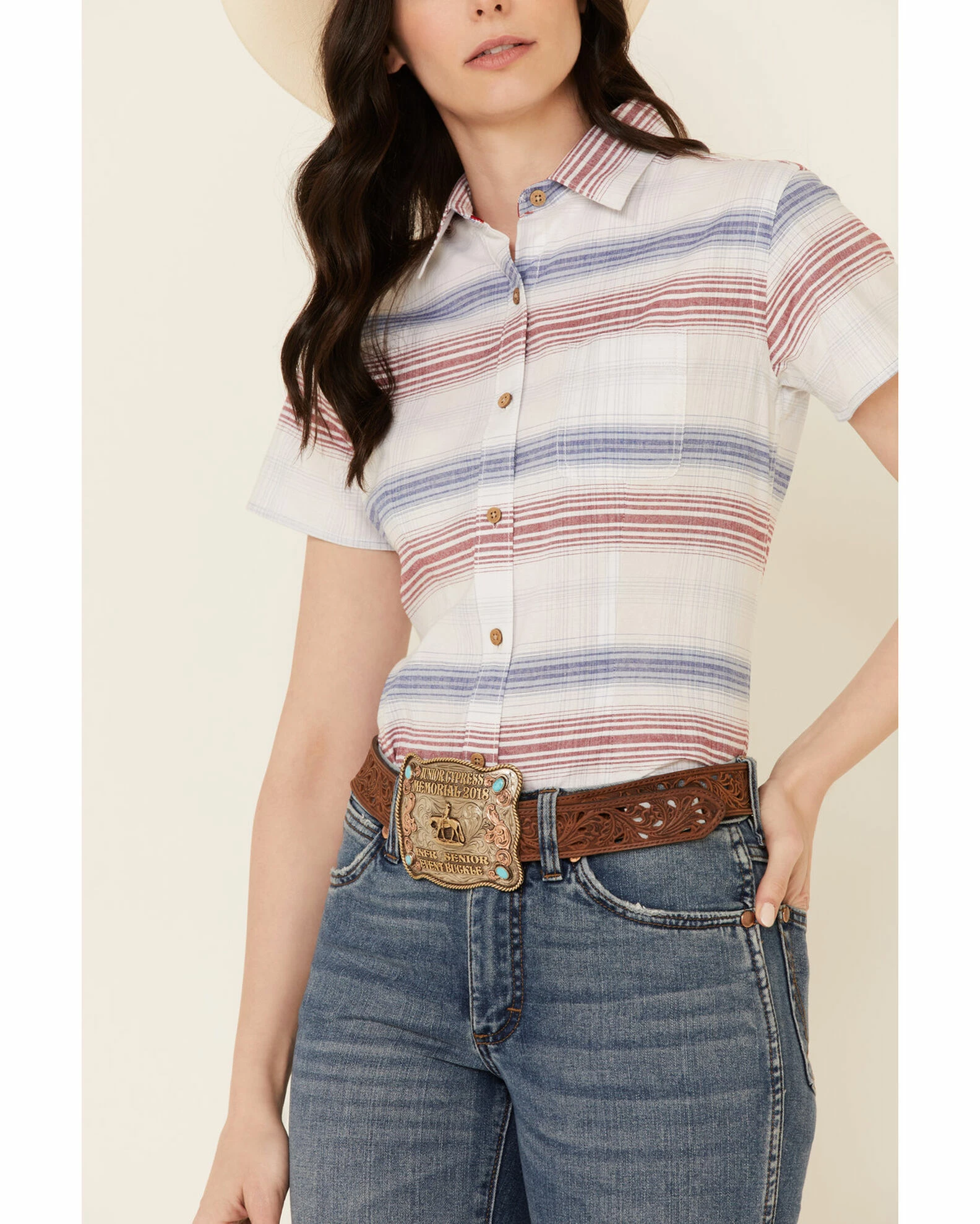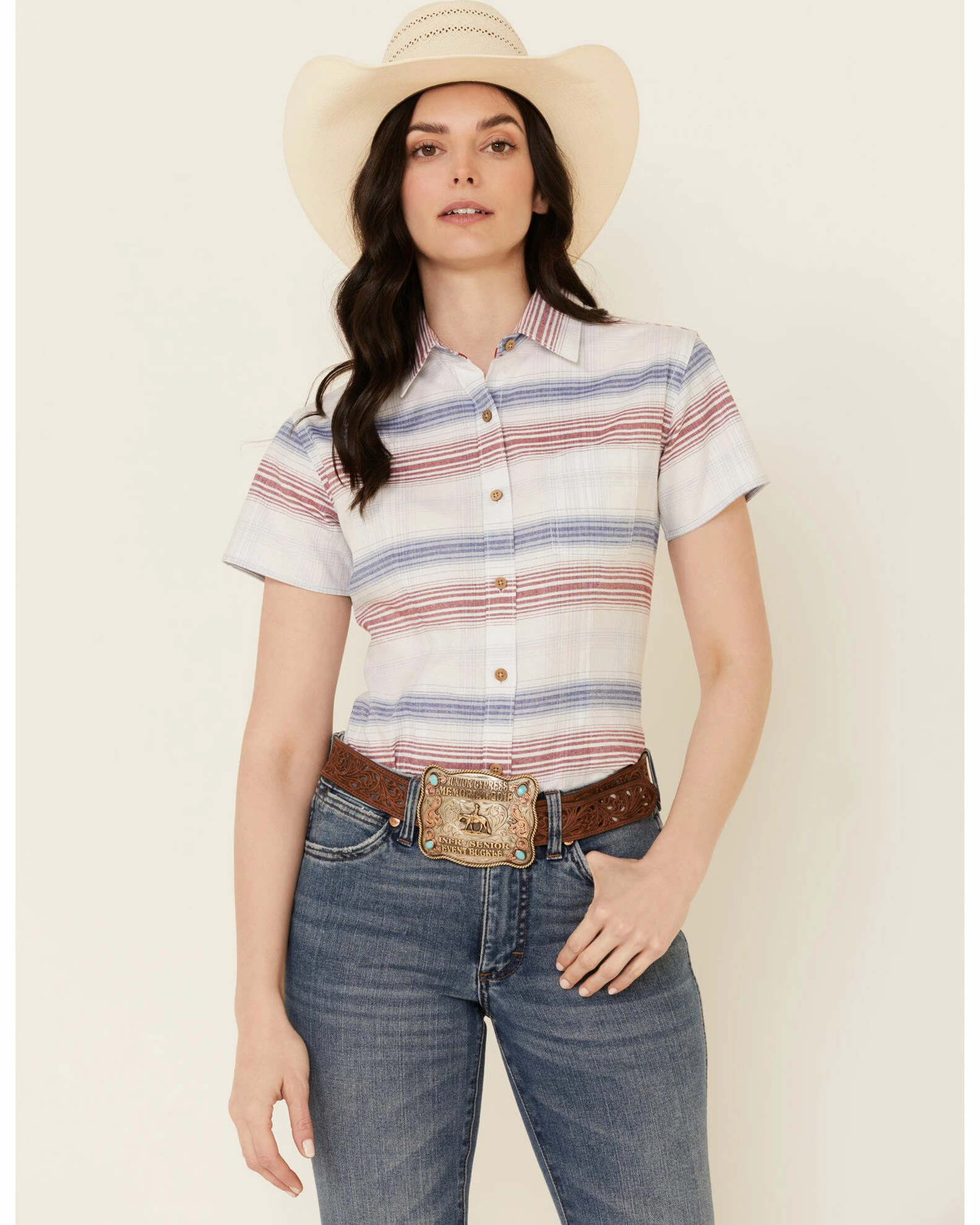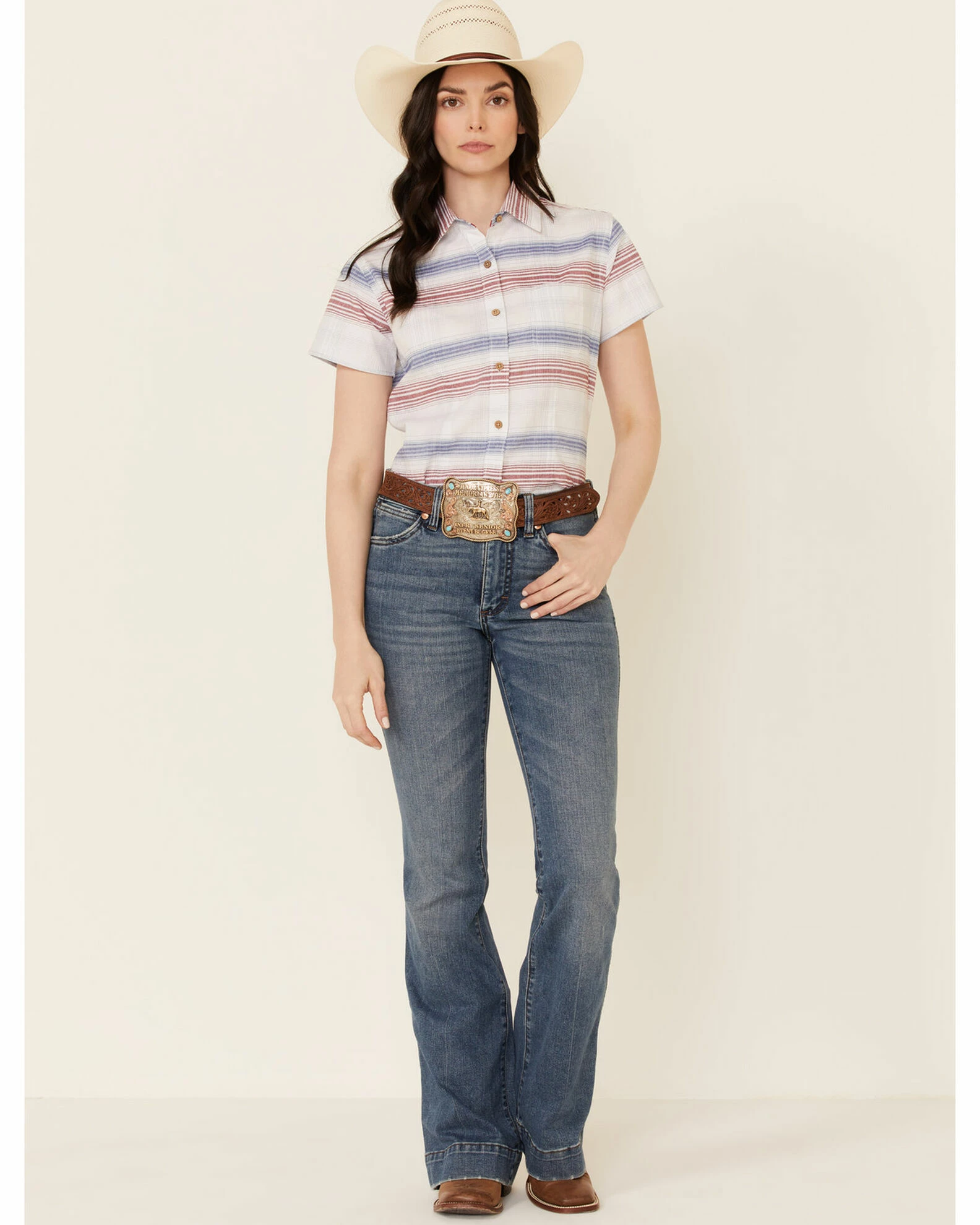 Rough Stock By Panhandle Women’s Multi Stripe Short Sleeve Button-Down Western Core Shirt Red/white/blue