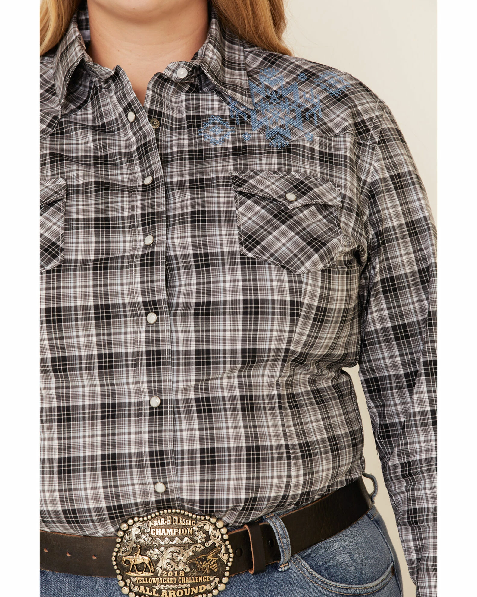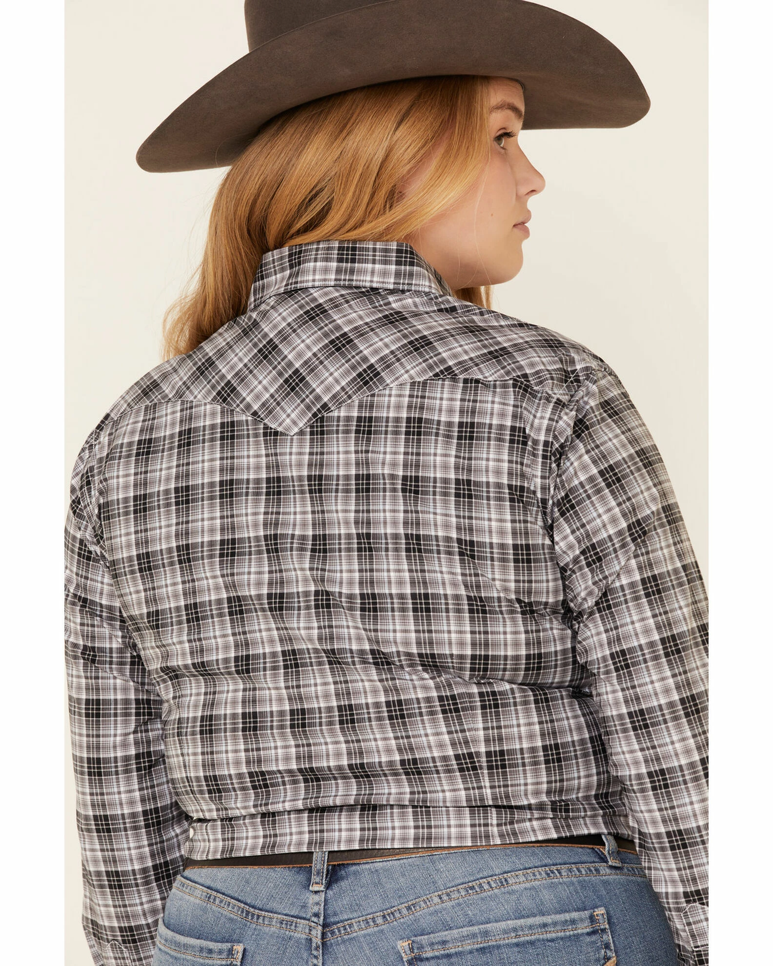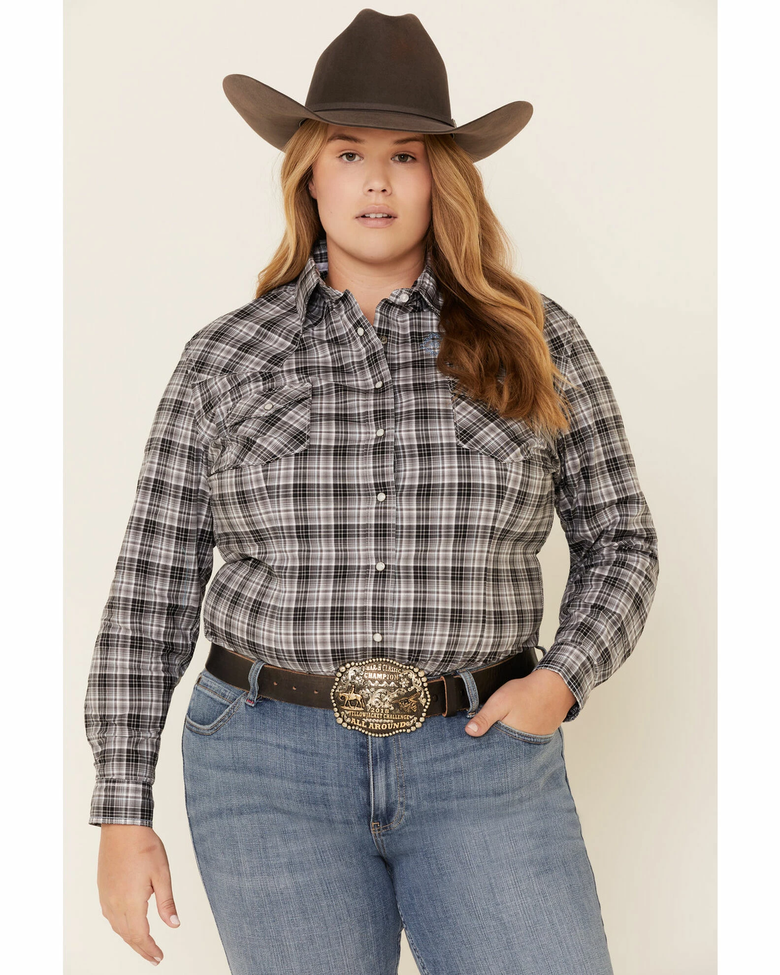 Rough Stock By Panhandle Women’s West Bourne Ombre Plaid Long Sleeve Western Shirt – Plus Black